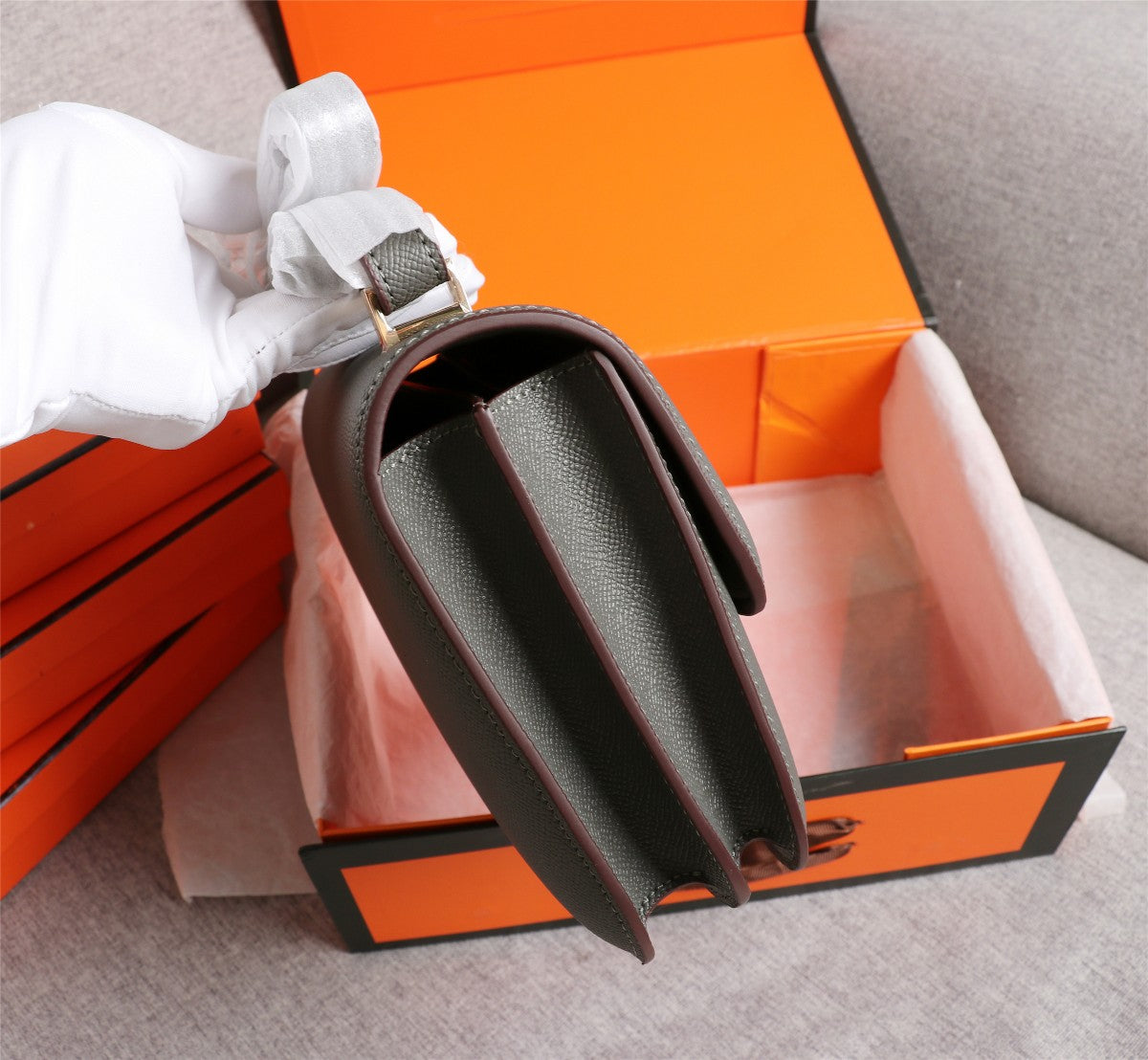 HM CONSTANCE BAGS 19 PEWTER GRAY EPSOM
