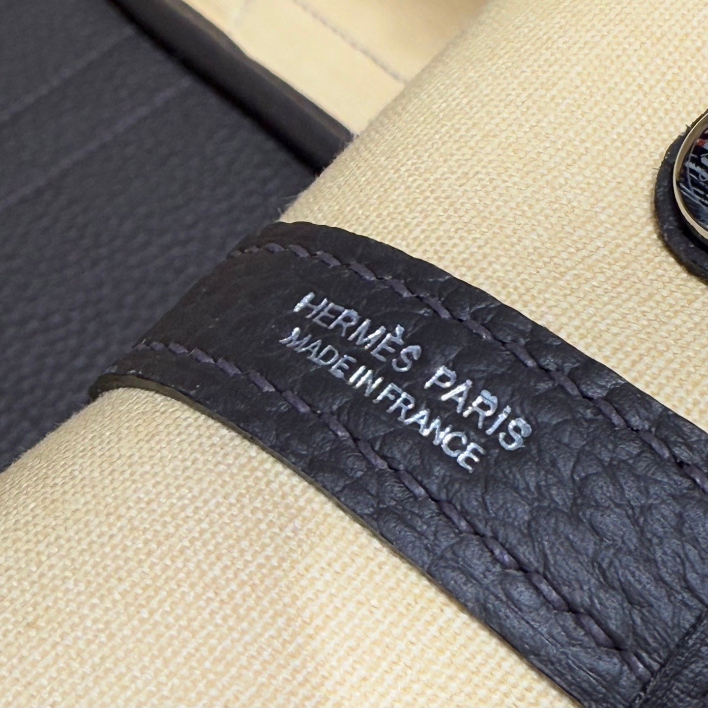 HM Garden Party 30cm Bag Black Togo Light Beige Canvas