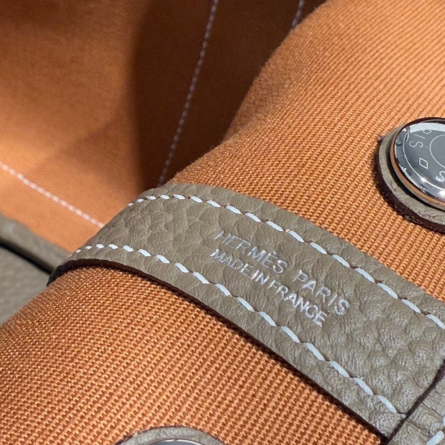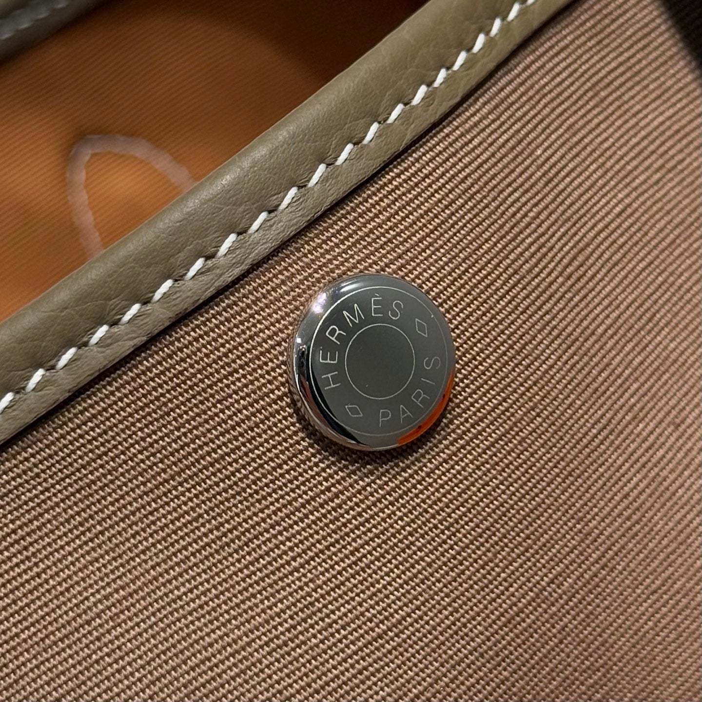 HM Garden Party 30cm Bag Etoupe Togo Chocolate Canvas