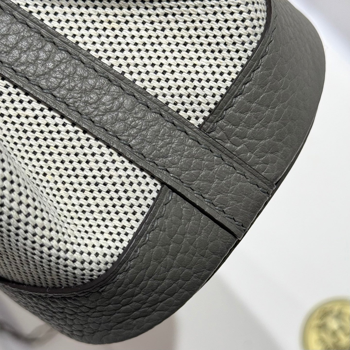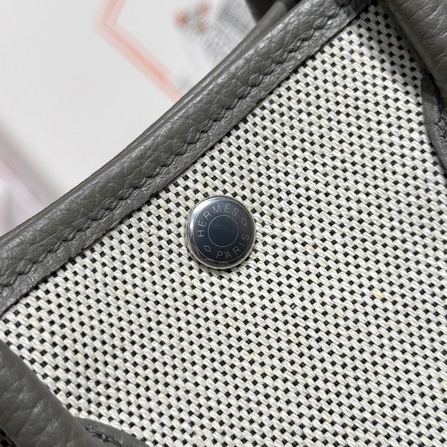 HM Garden Party Mini 23cm Bag Gris Neve Togo Cream Canvas