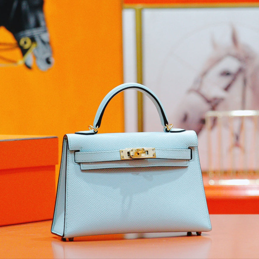 HM Mini Kelly 19cm Cloud Blue Epsom Gold Hardware