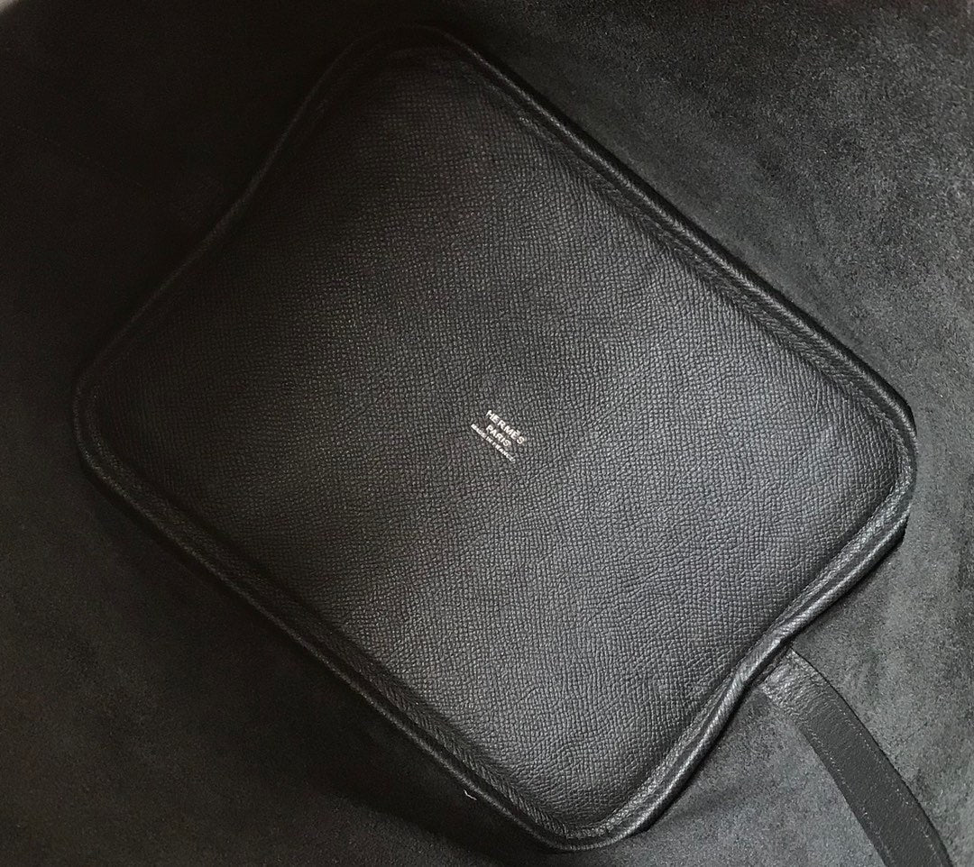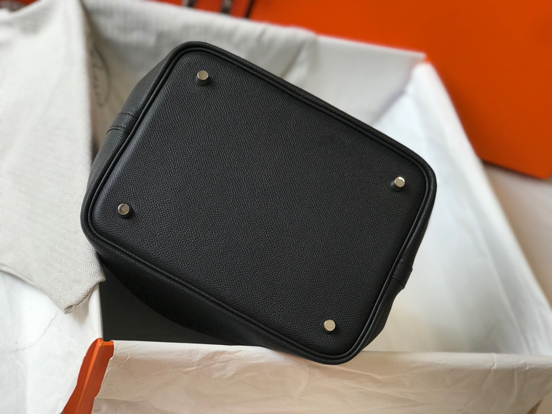 HM PICOTIN LOCK 18 BLACK EPSOM LEATHER WITH BRAID STRAP