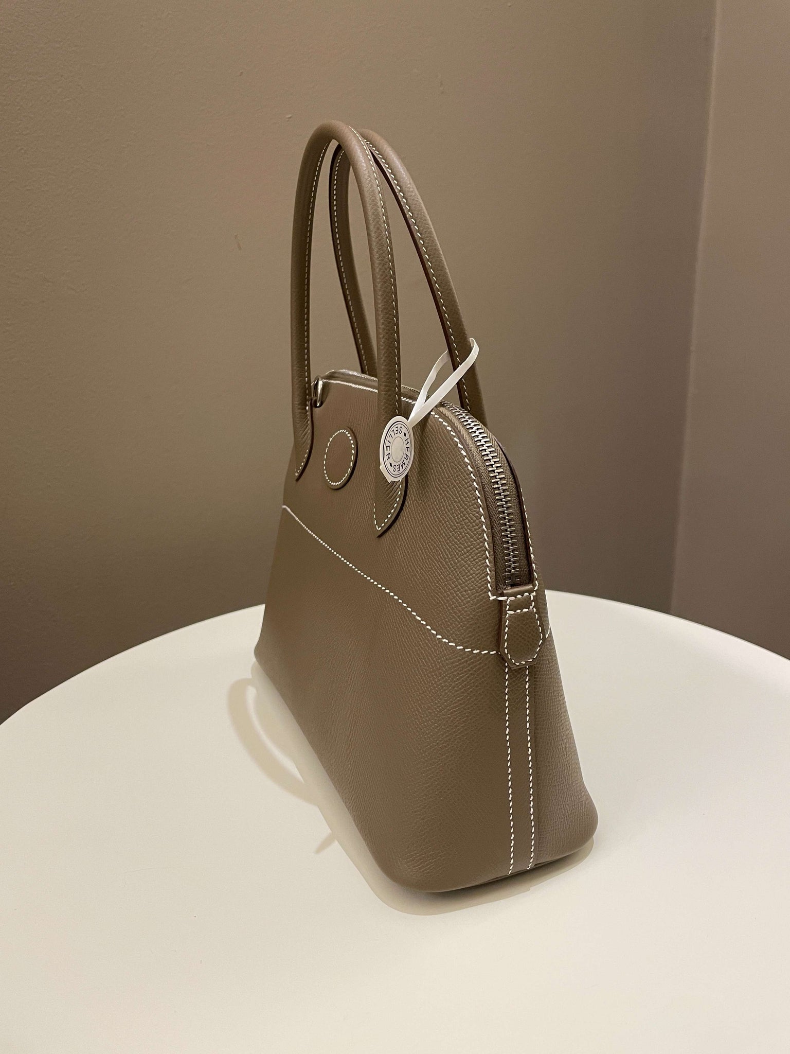 HM Constance Bag Dark Beige Epsom Silver Hardware