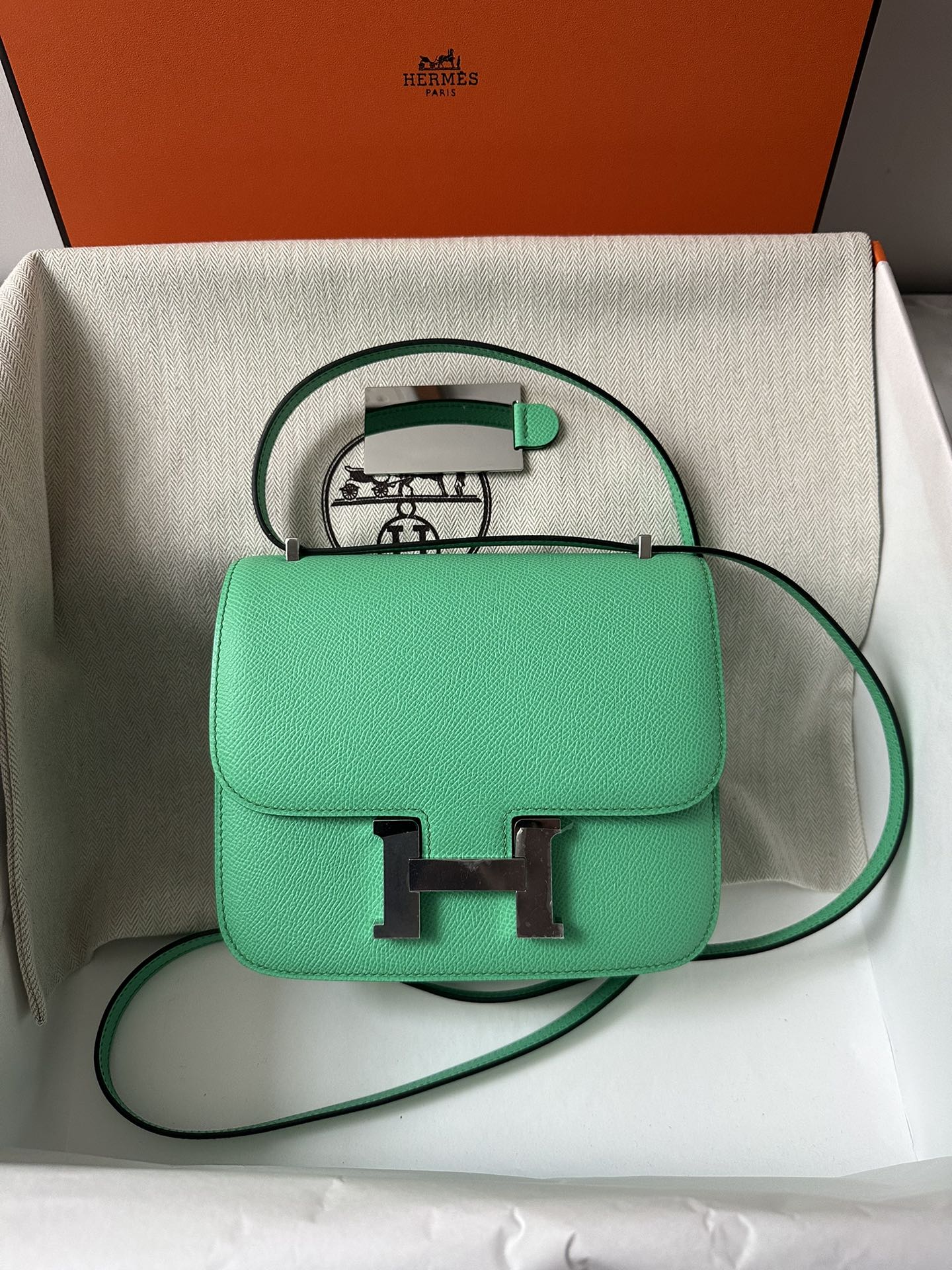 CONSTANCE 18 MINT EPSOM SILVER HARDWARE