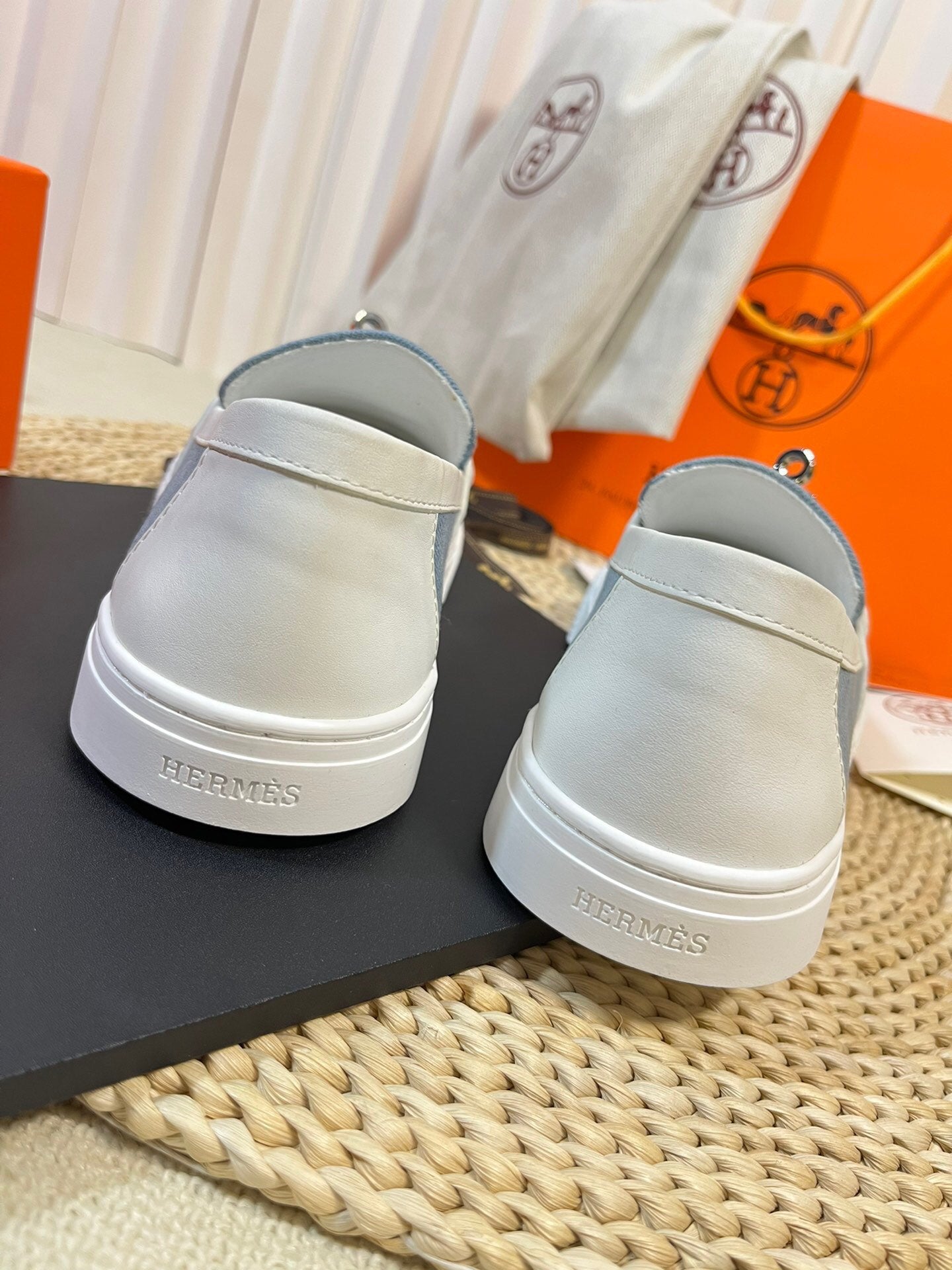 HM Denim Loafer Blue White Cowhide Cloth 317048
