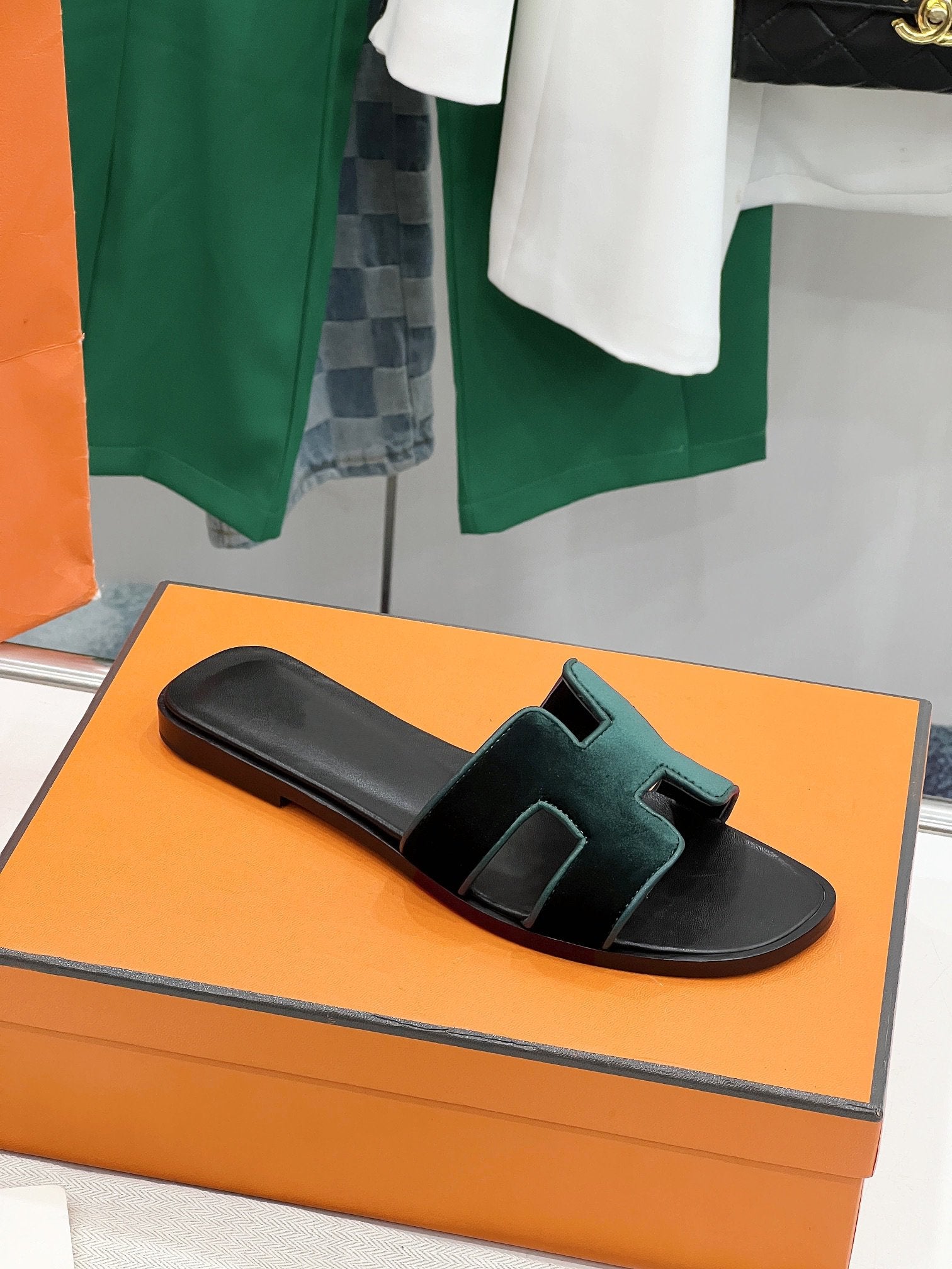 • Material: Sandal in velvet goatskin with iconic "H" cut-out.