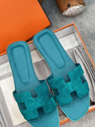 • Material: Sandal in suede goatskin with iconic "H" cut-out.