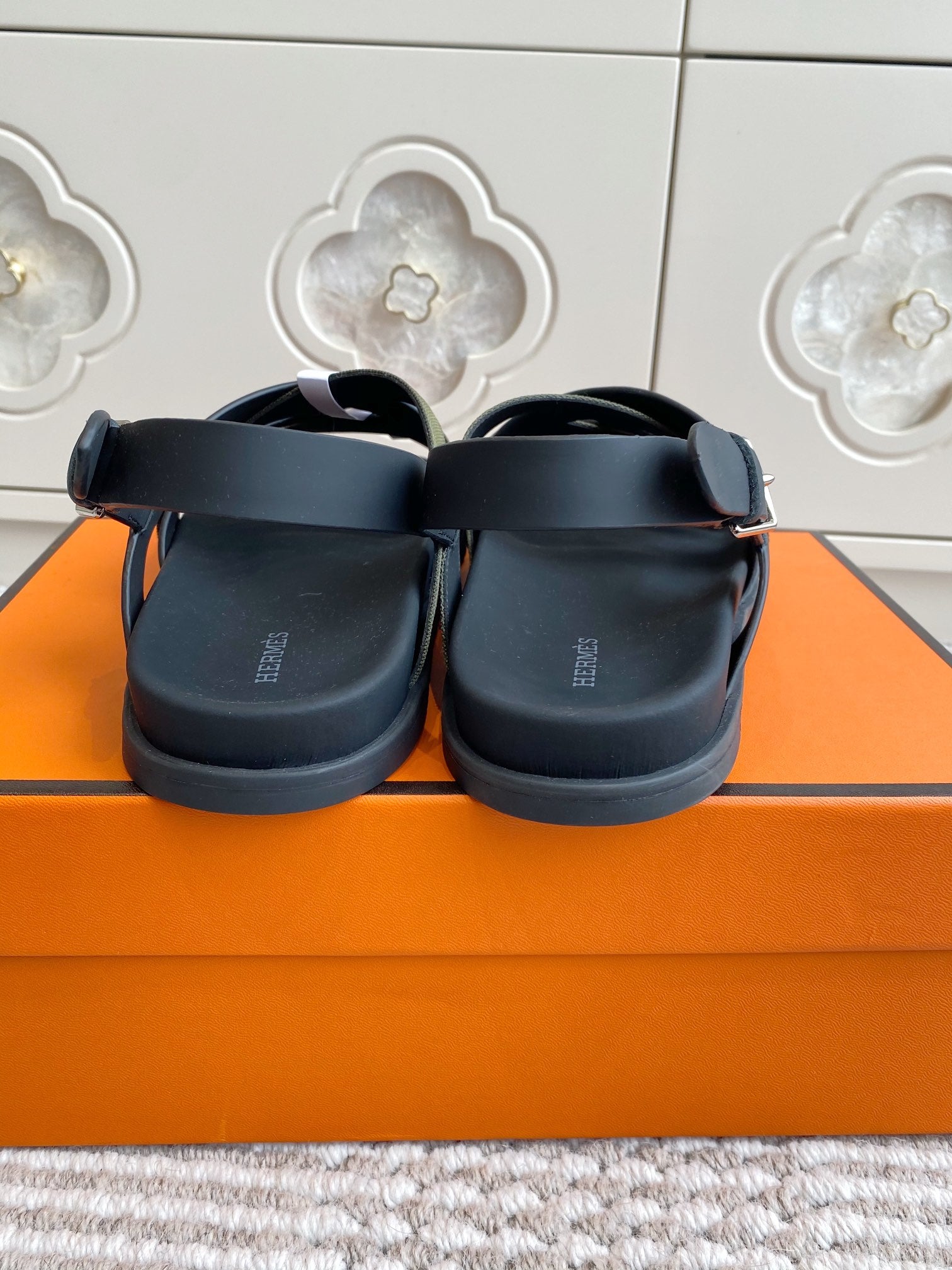 HM Heracles Sandals Black Army Green Calfskin 291450