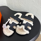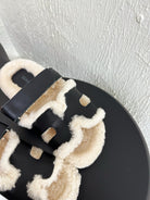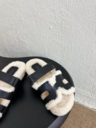 HM Chypre Sandal In Black White Lambskin And Fleece Lining 961138