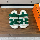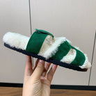 HM Chypre Sandal In Dark Green Mix White Fleece And Suede 984195
