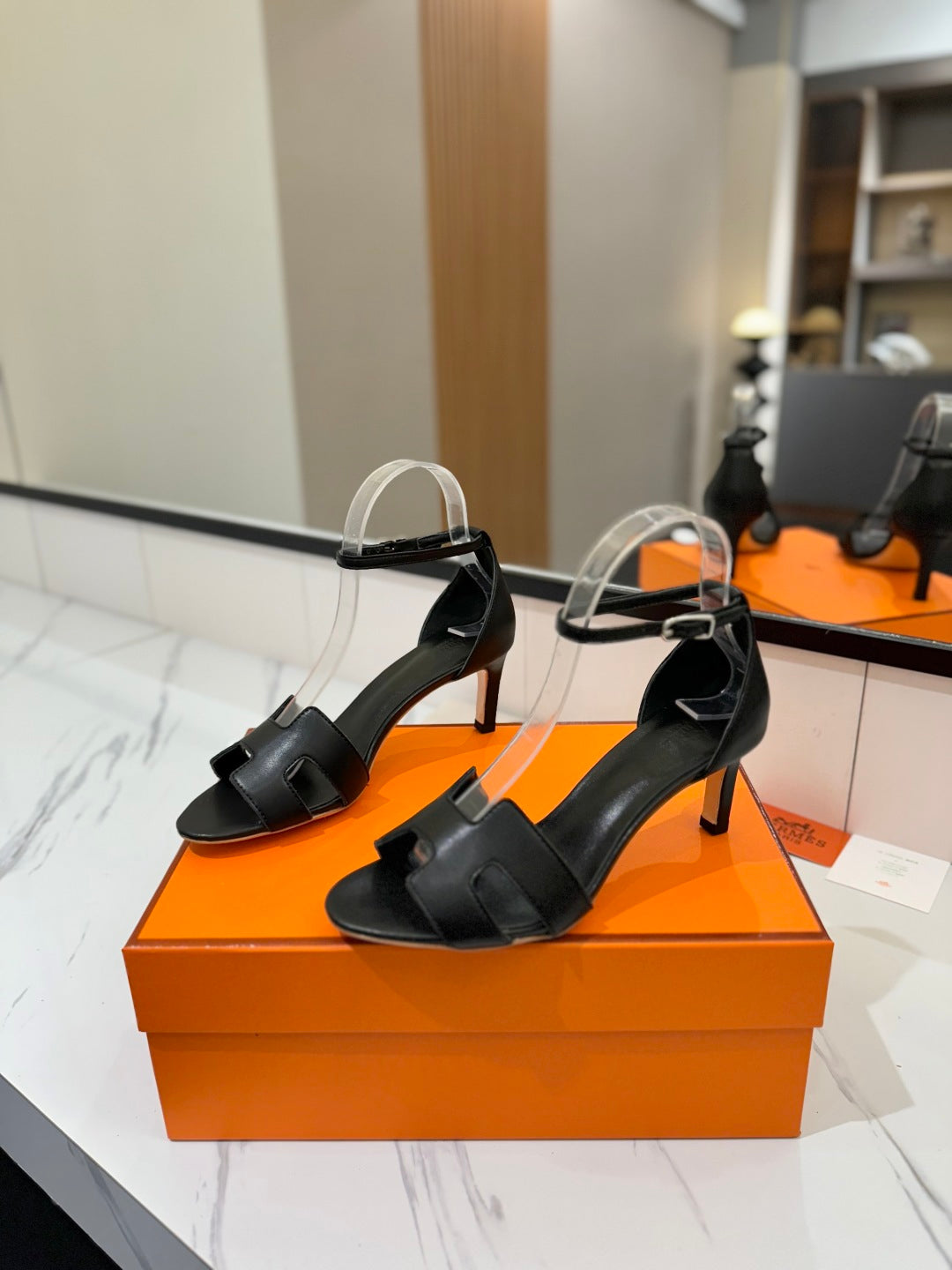 HM Joy 65mm Heeled Sandals Black Flat Cowhide 294926