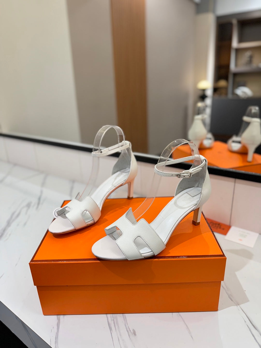 HM Joy 65mm Heeled Sandals White Cowhide 294913