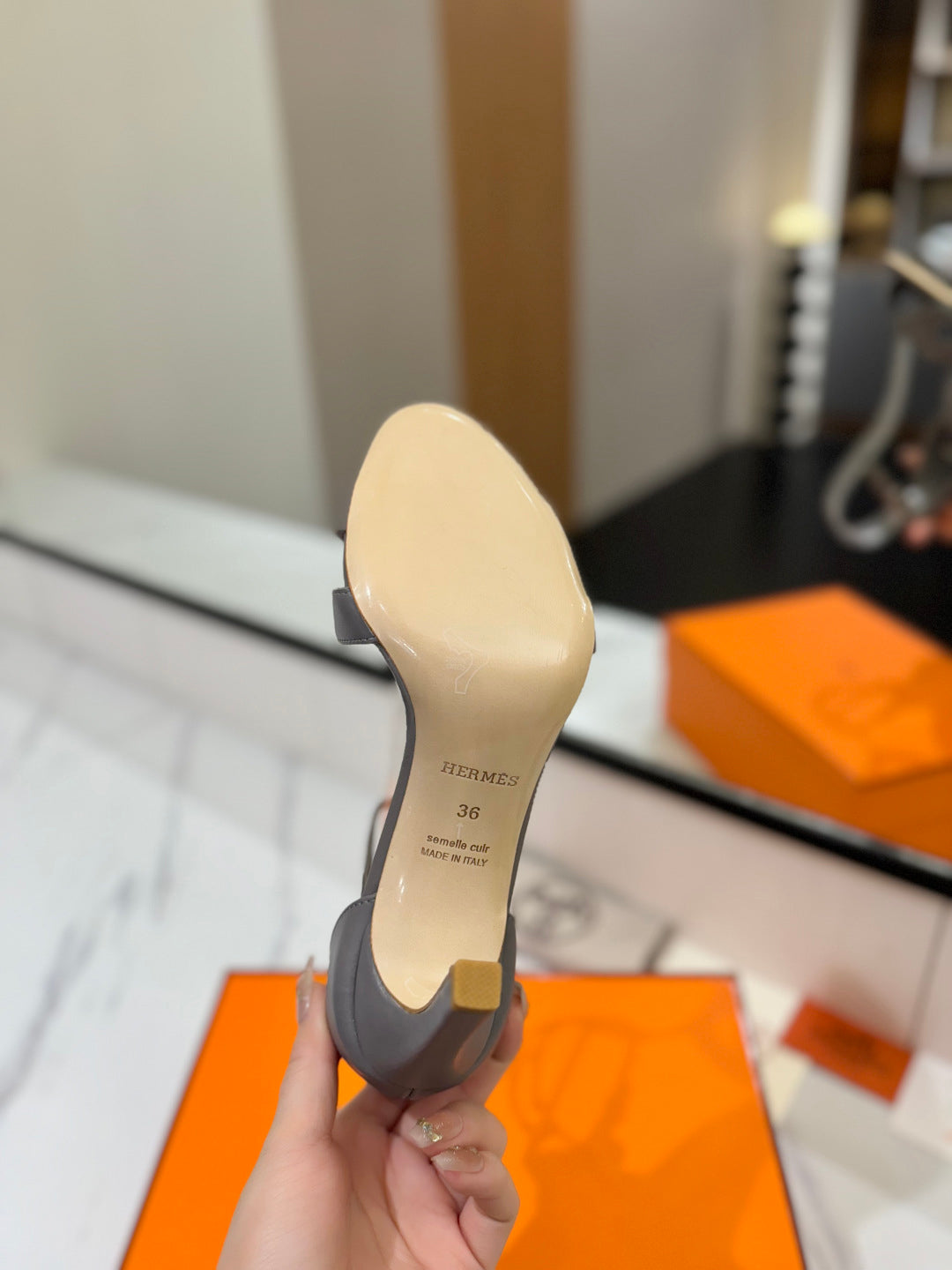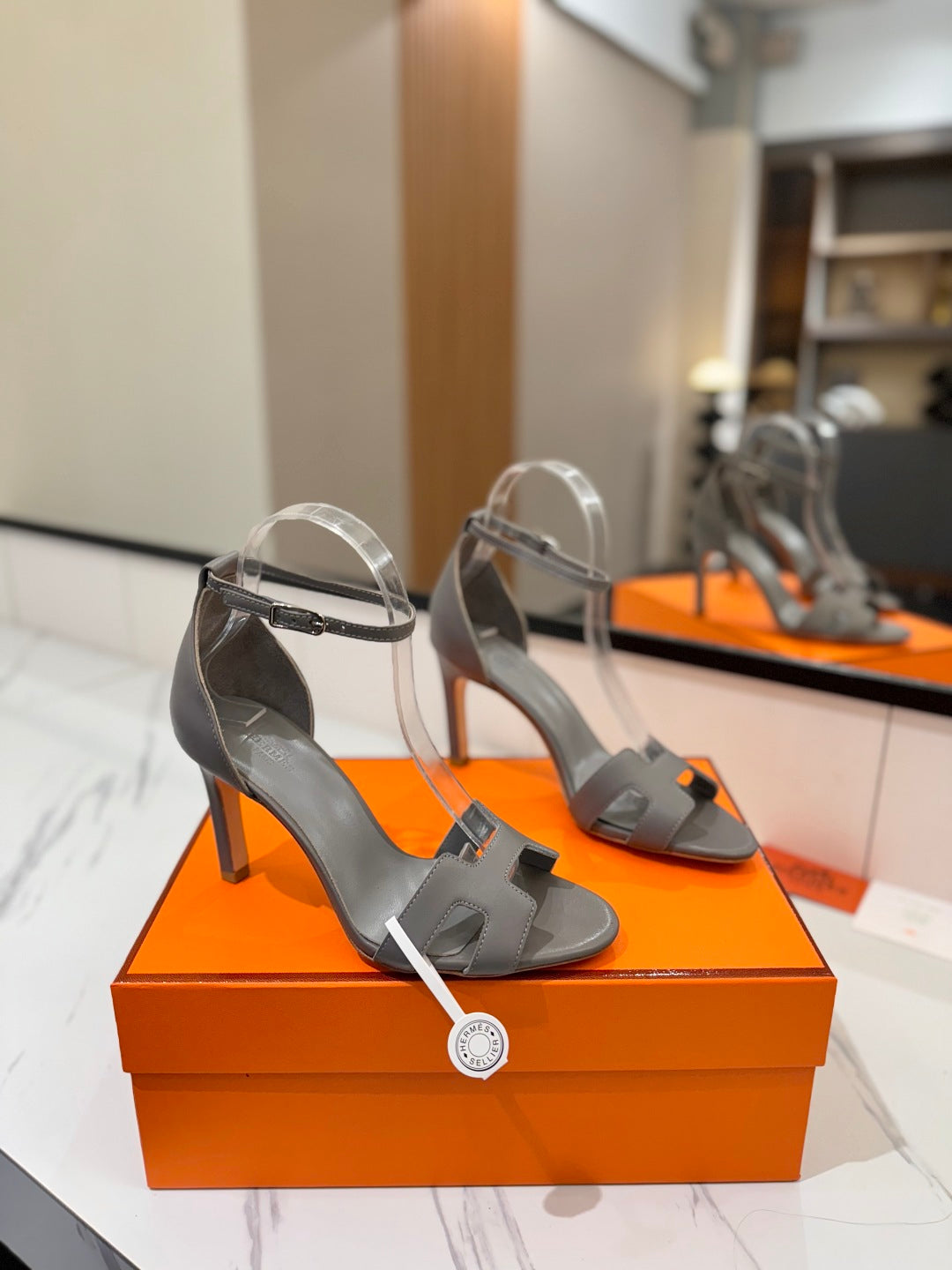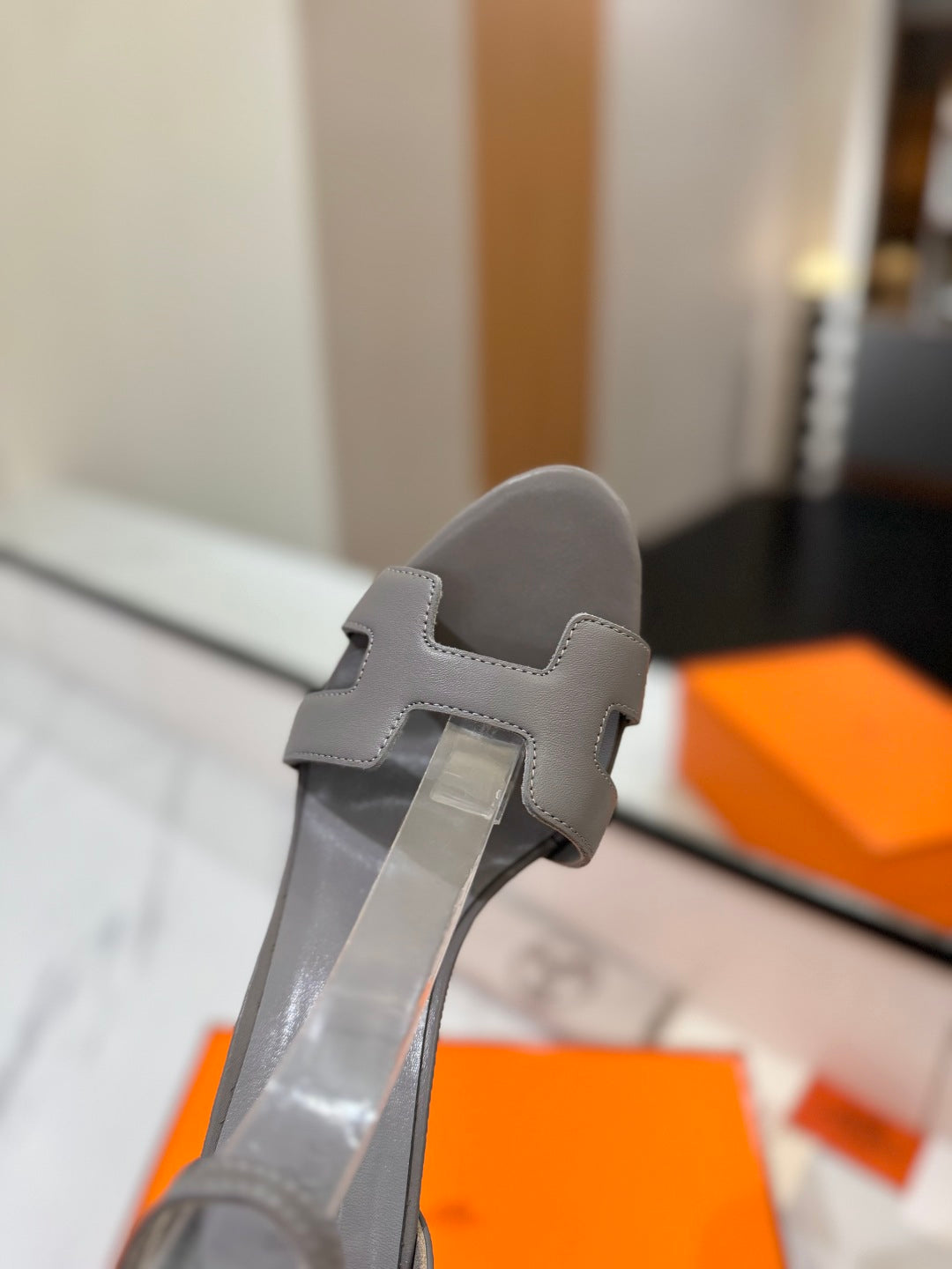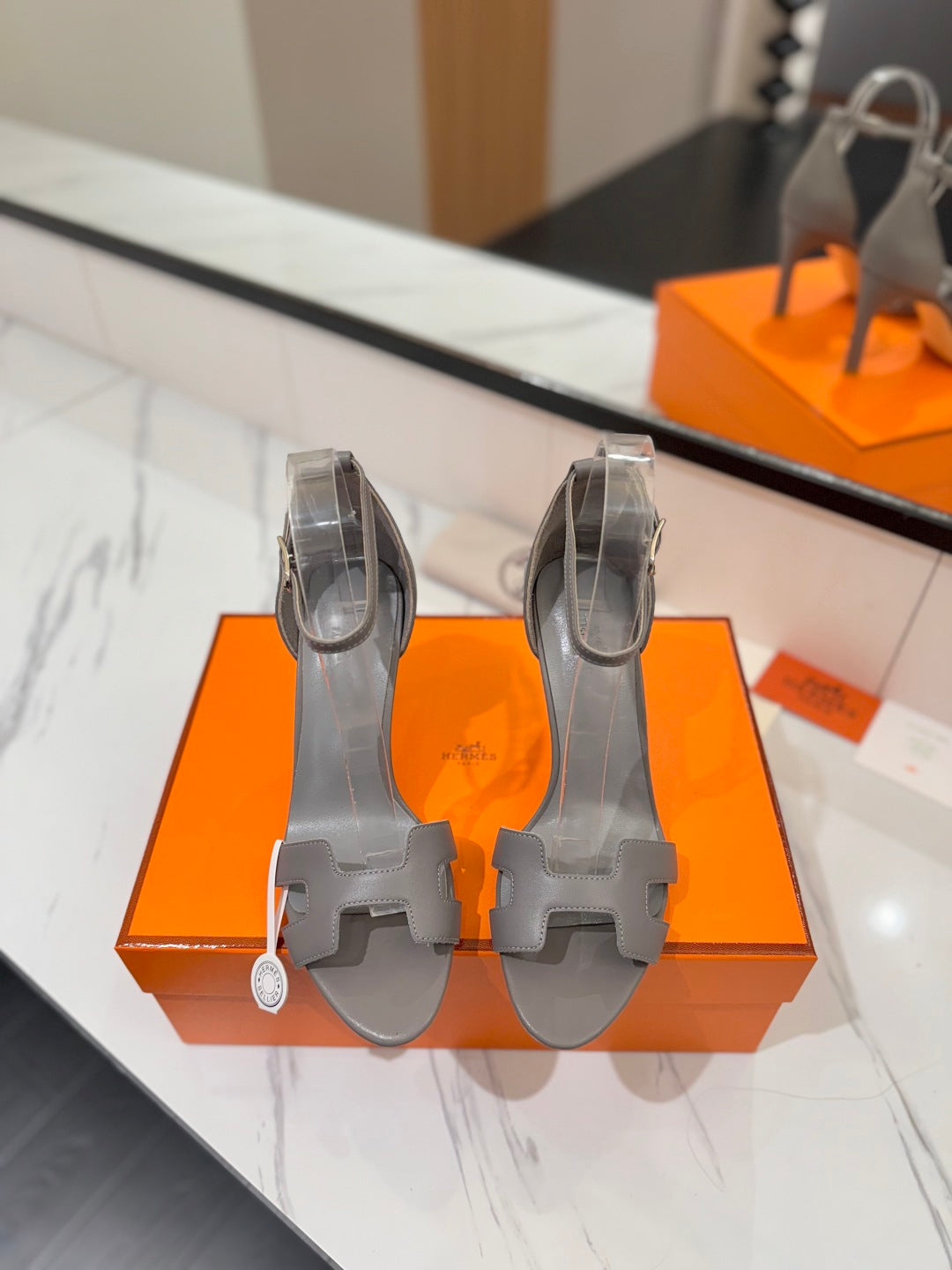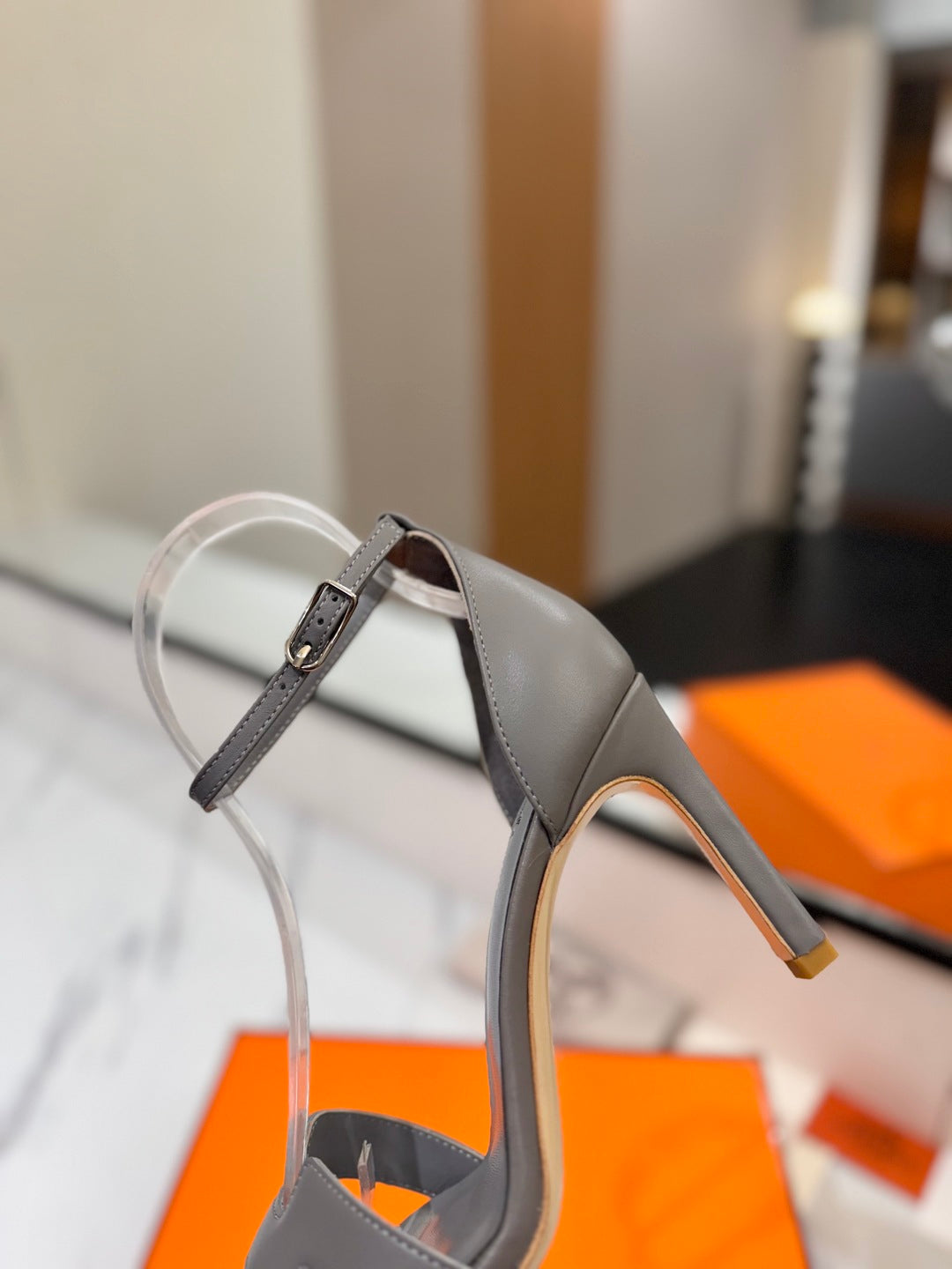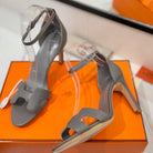 HM Joy 90mm Heeled Sandals Gray Flat Cowhide 294925