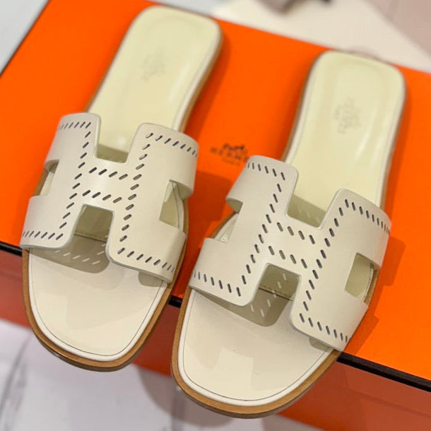 HM Oran Sandal Pearl Ivory Perforate Cowhide 294878
