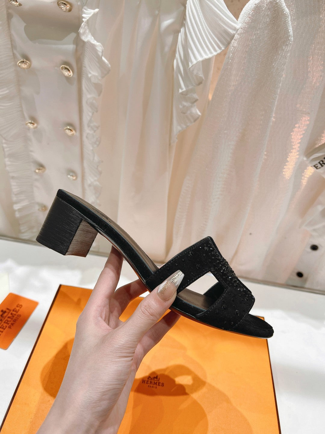 OASIS SANDALS LAMBSKIN ATTACH CRYSTAL-BLACK