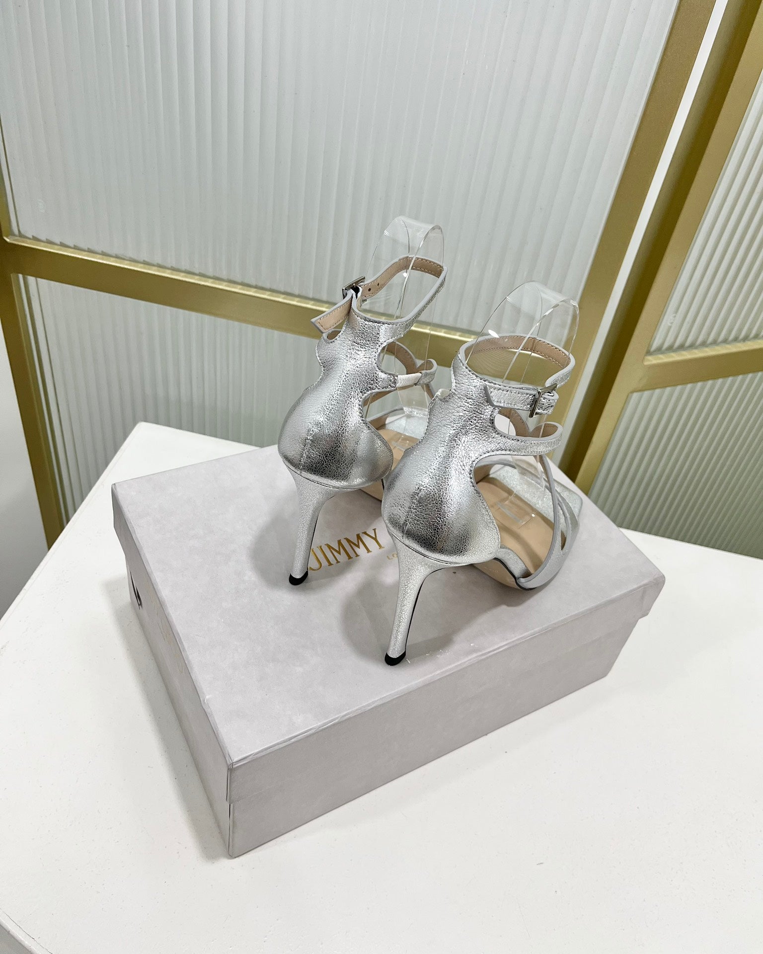Jimmy 25 Verity Sandal 70 Silver Cracked Cowhide 240033
