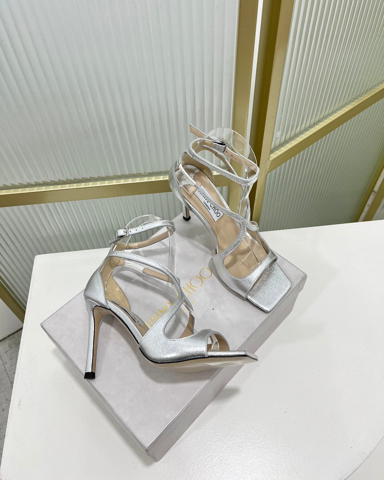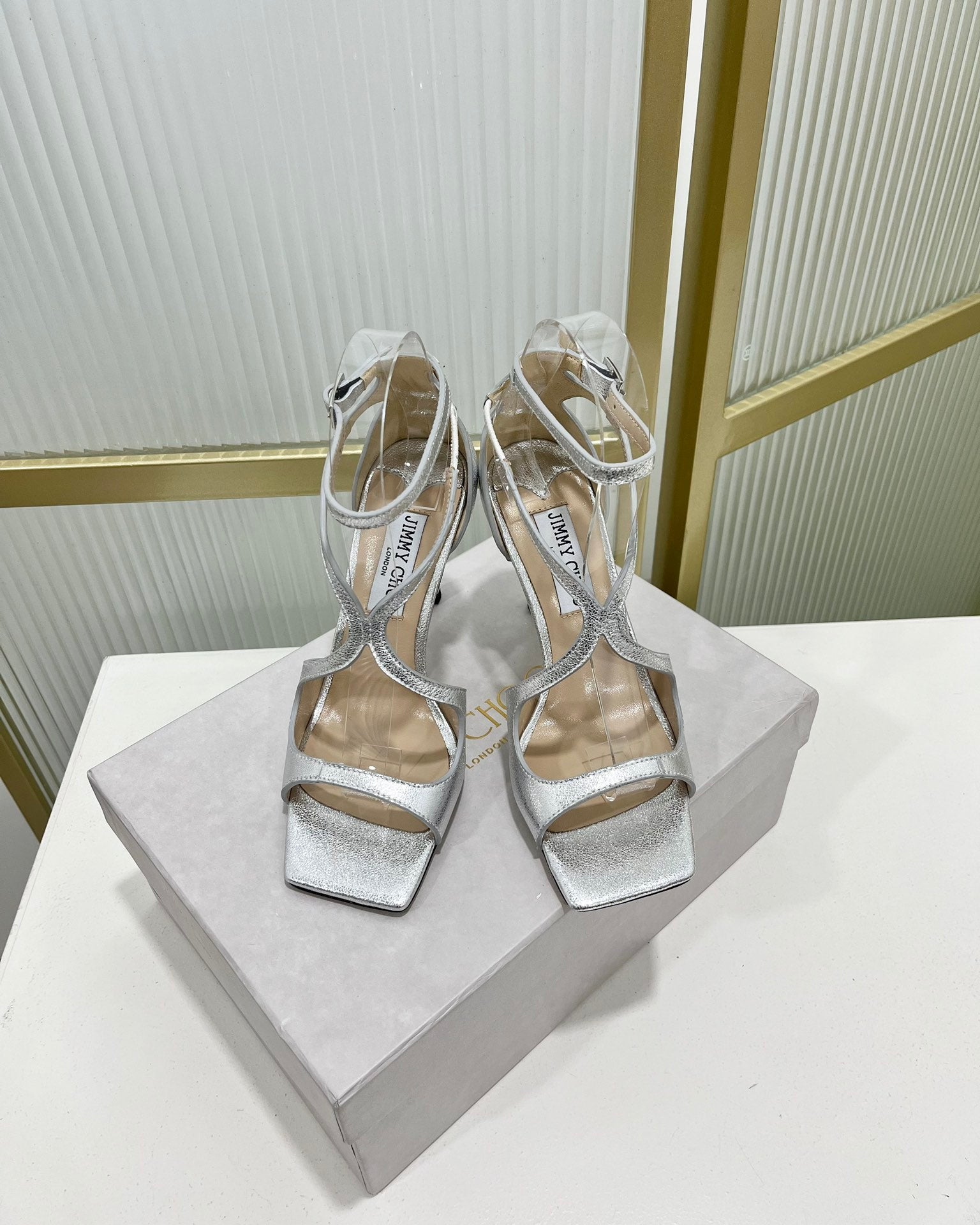 Jimmy 25 Platform Sandal Heels Gold Mirror TPU Material 240010