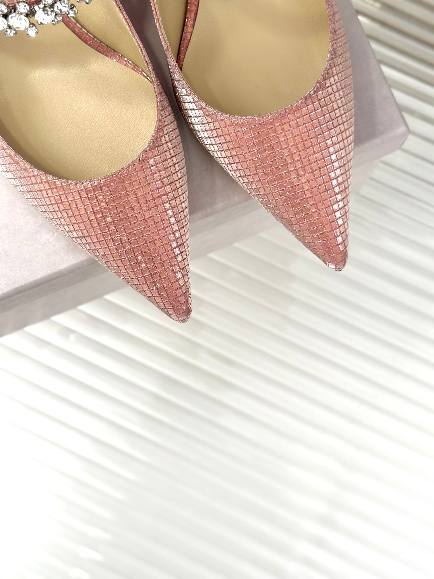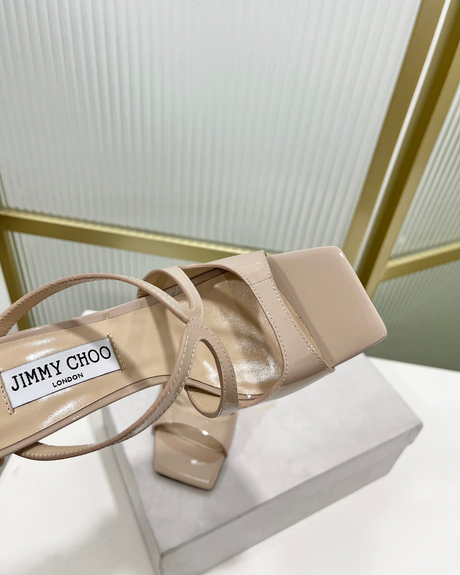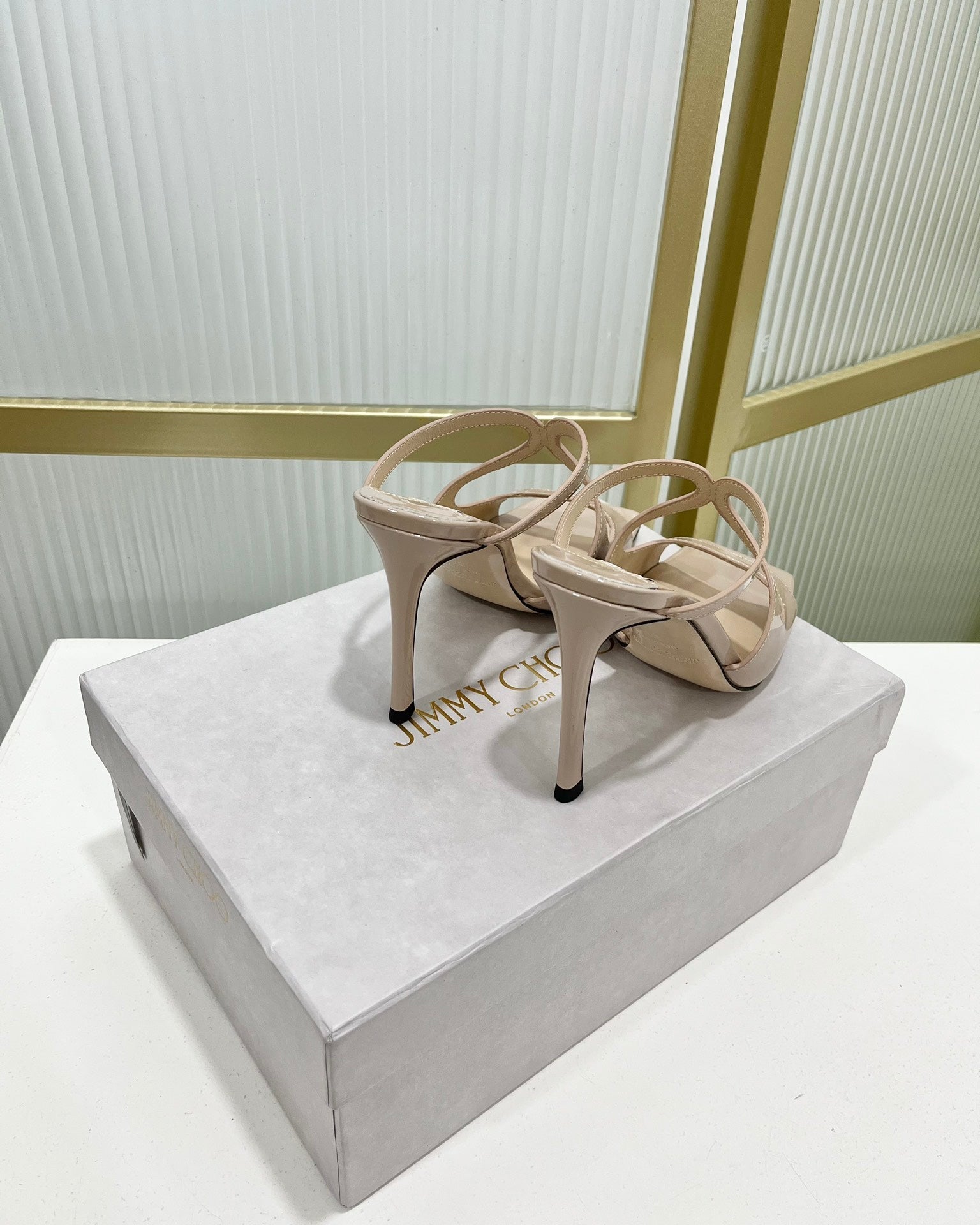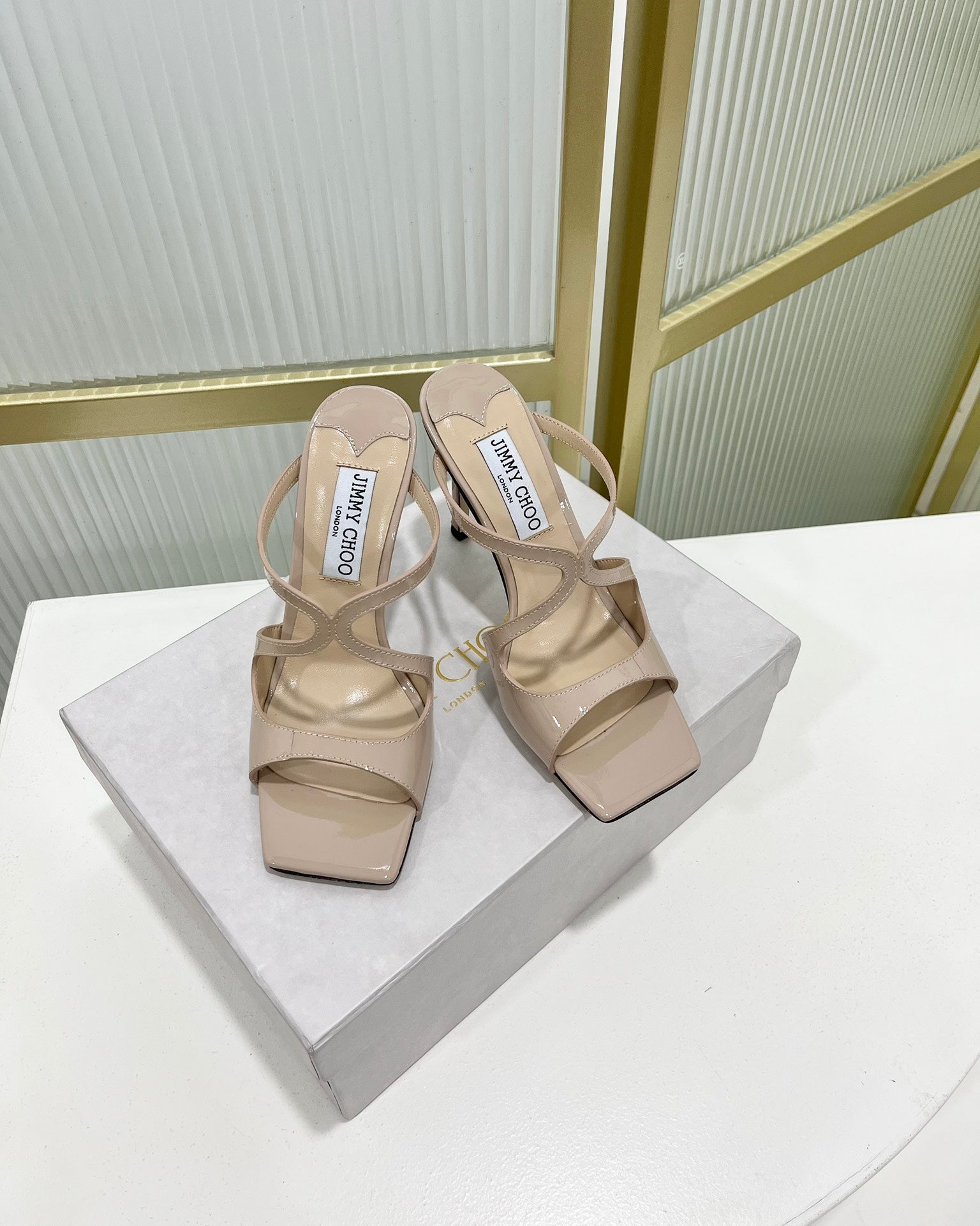 Jimmy Azia 95 In Light Beige Pink Glossy Cowhide Sandals 587703