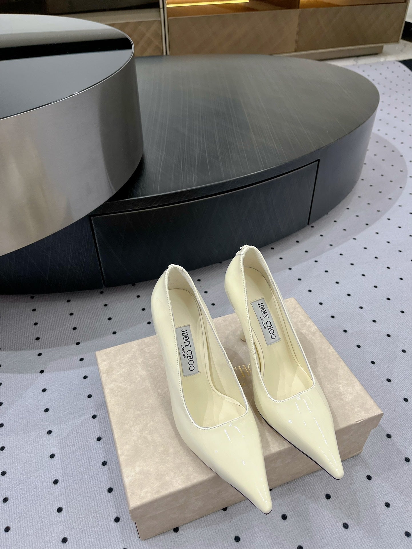 Jimmy Ixia 95 Pumps In Ivory White Glossy Cowhide 591602