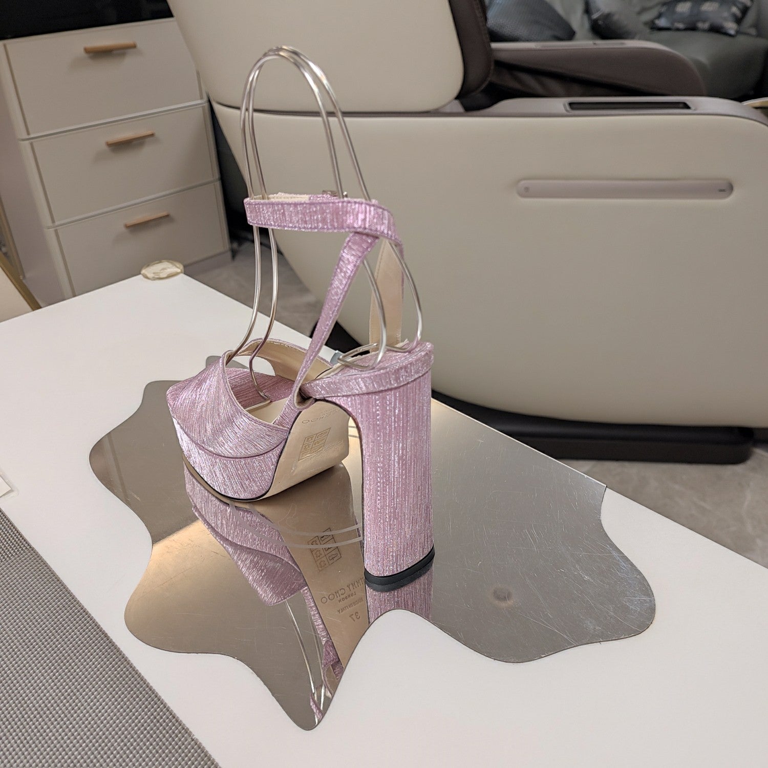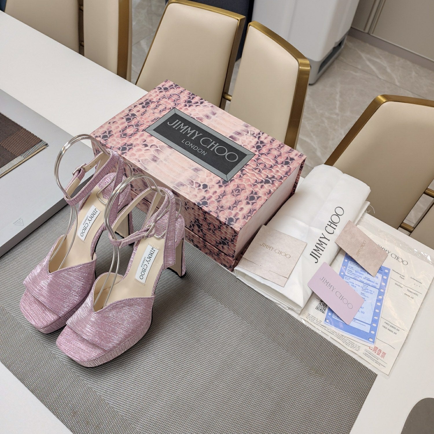 Jimmy 25 Platform Sandal Heels Lace Pink Satin Fabric 240014