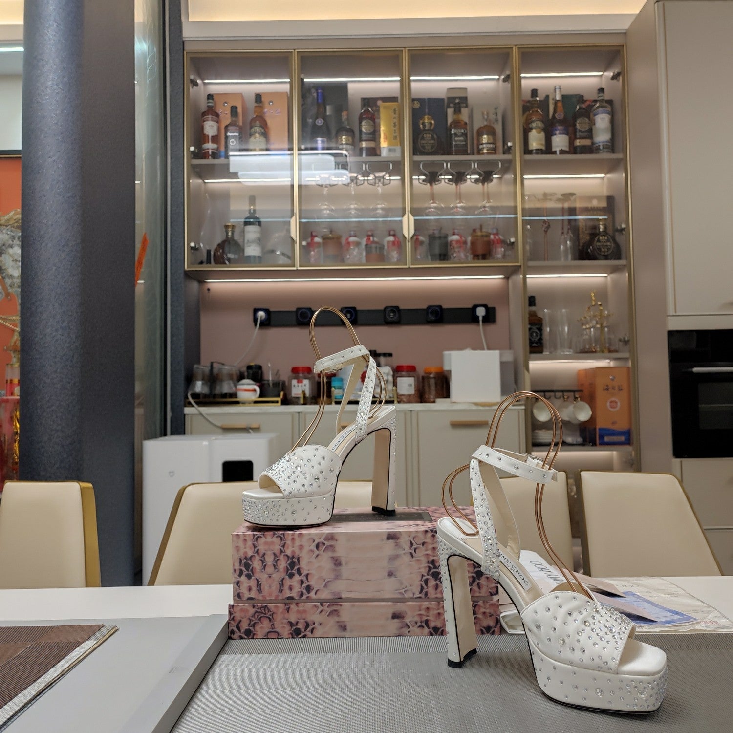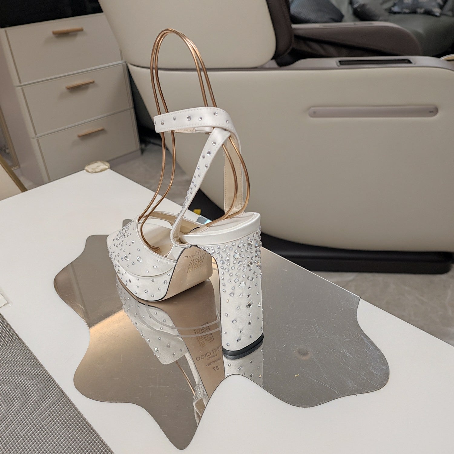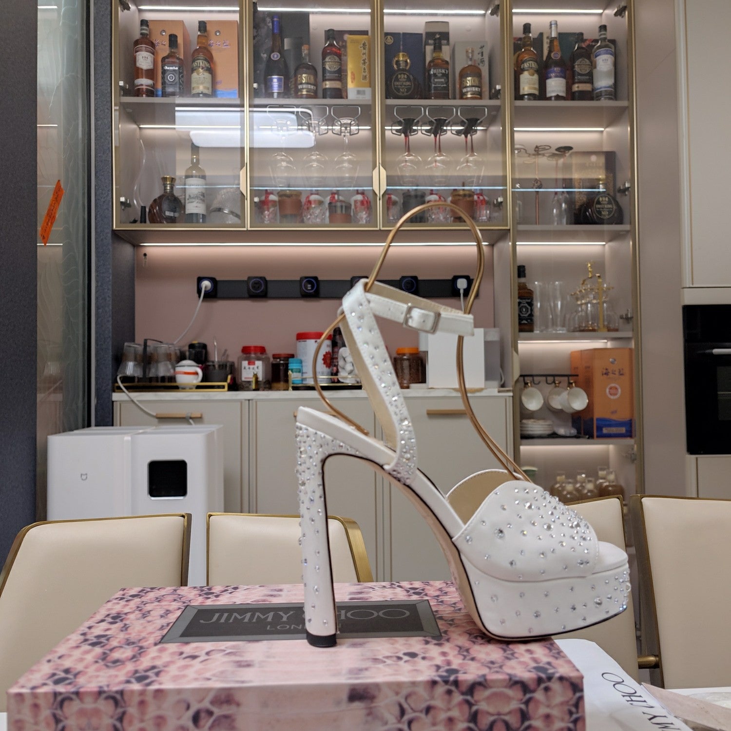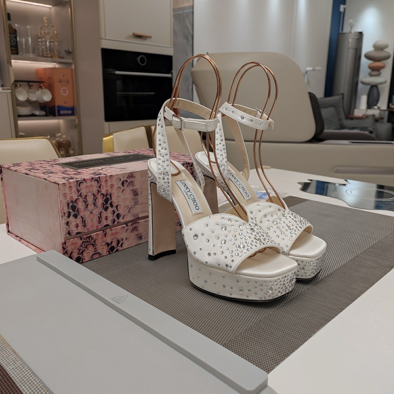 Jimmy 25 Platform Sandal Heels White Silk Satin 240013