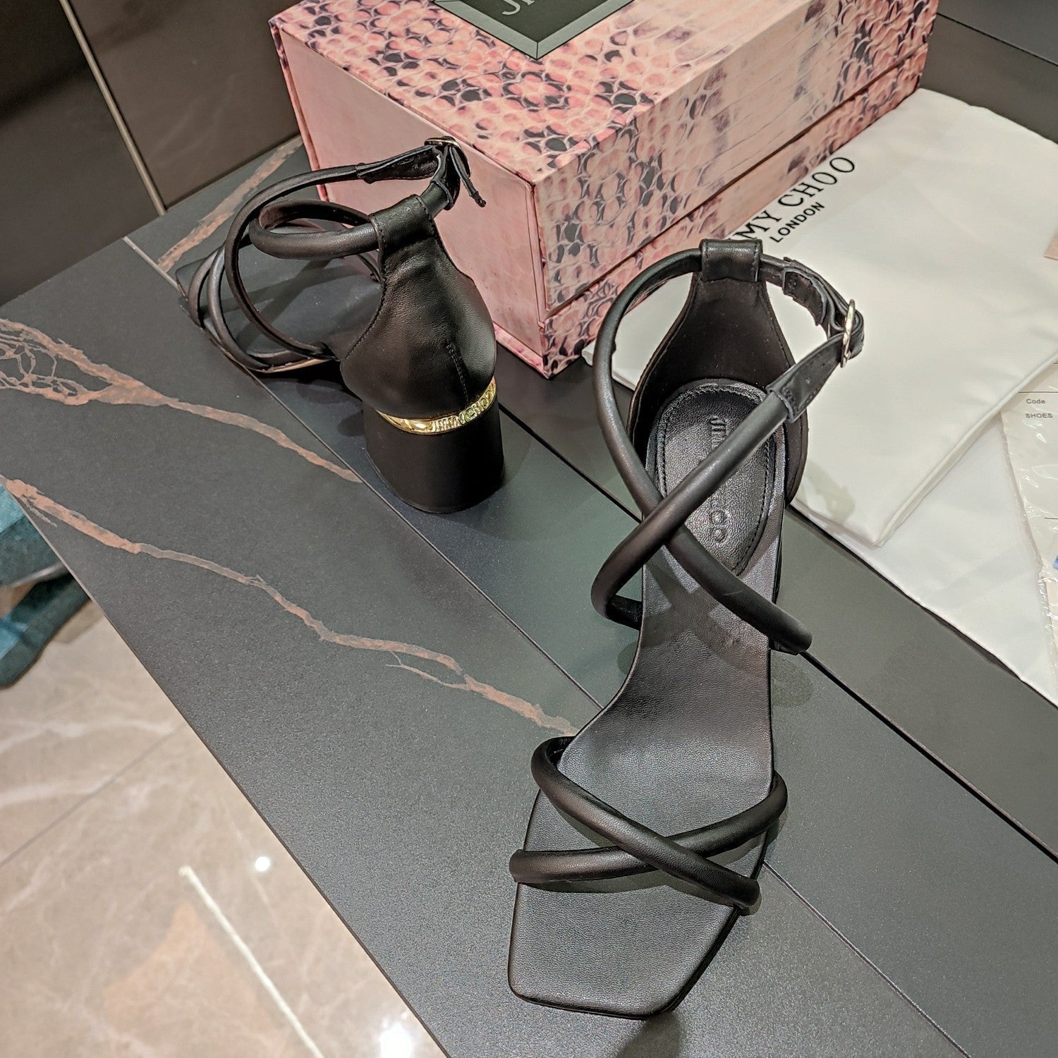 Jimmy 25 Sandal Heels Black Cowhide 240086