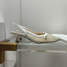 Jimmy Choo Slingback Pum White Beige Heel Mesh and Leather