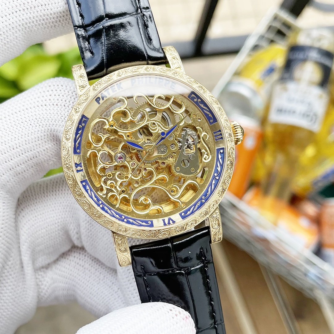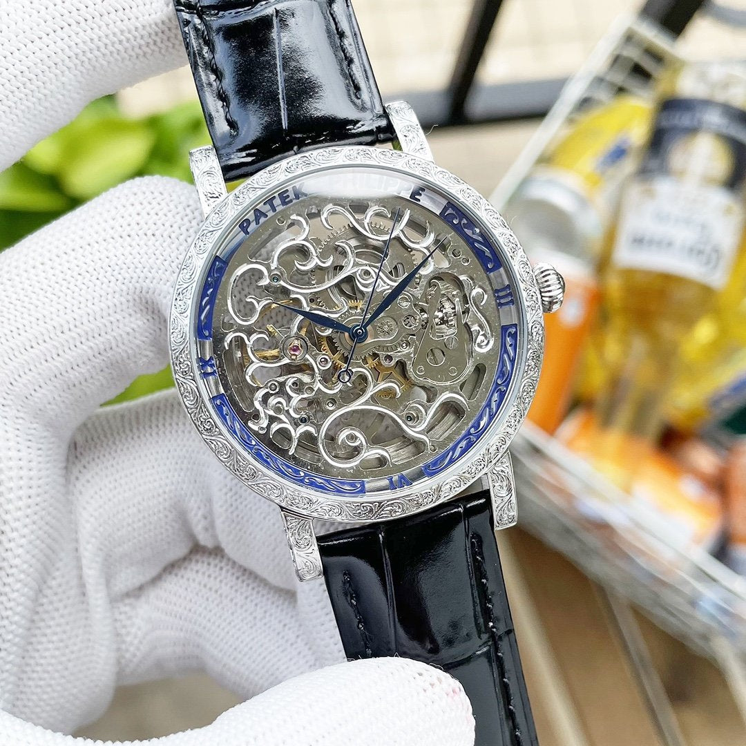 CALATRAVA SKELETON ENGRAVED HAND LEATHER STRAP