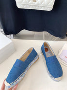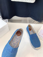 CHLOÉ LOAFER SHOES IN CERULEAN BLUE DENIM AND WOVEN RAFFIA
