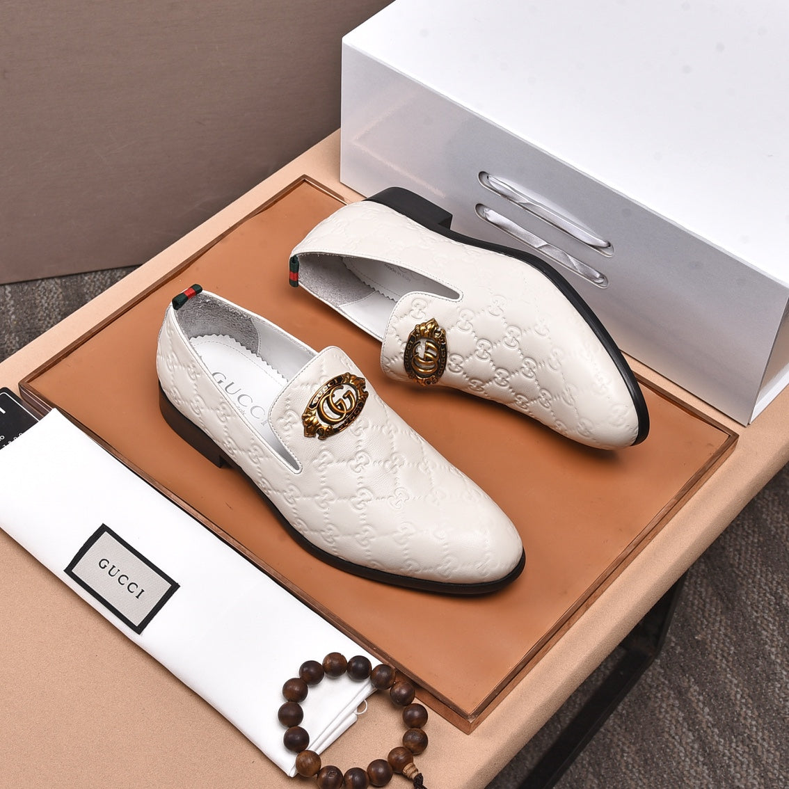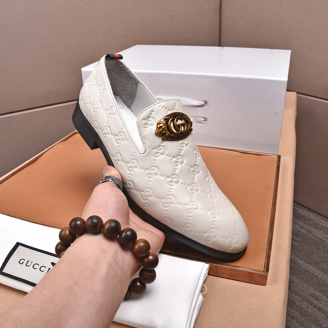 GG Men's Interlocking GG Loafer White Embossed Cowhide 480401