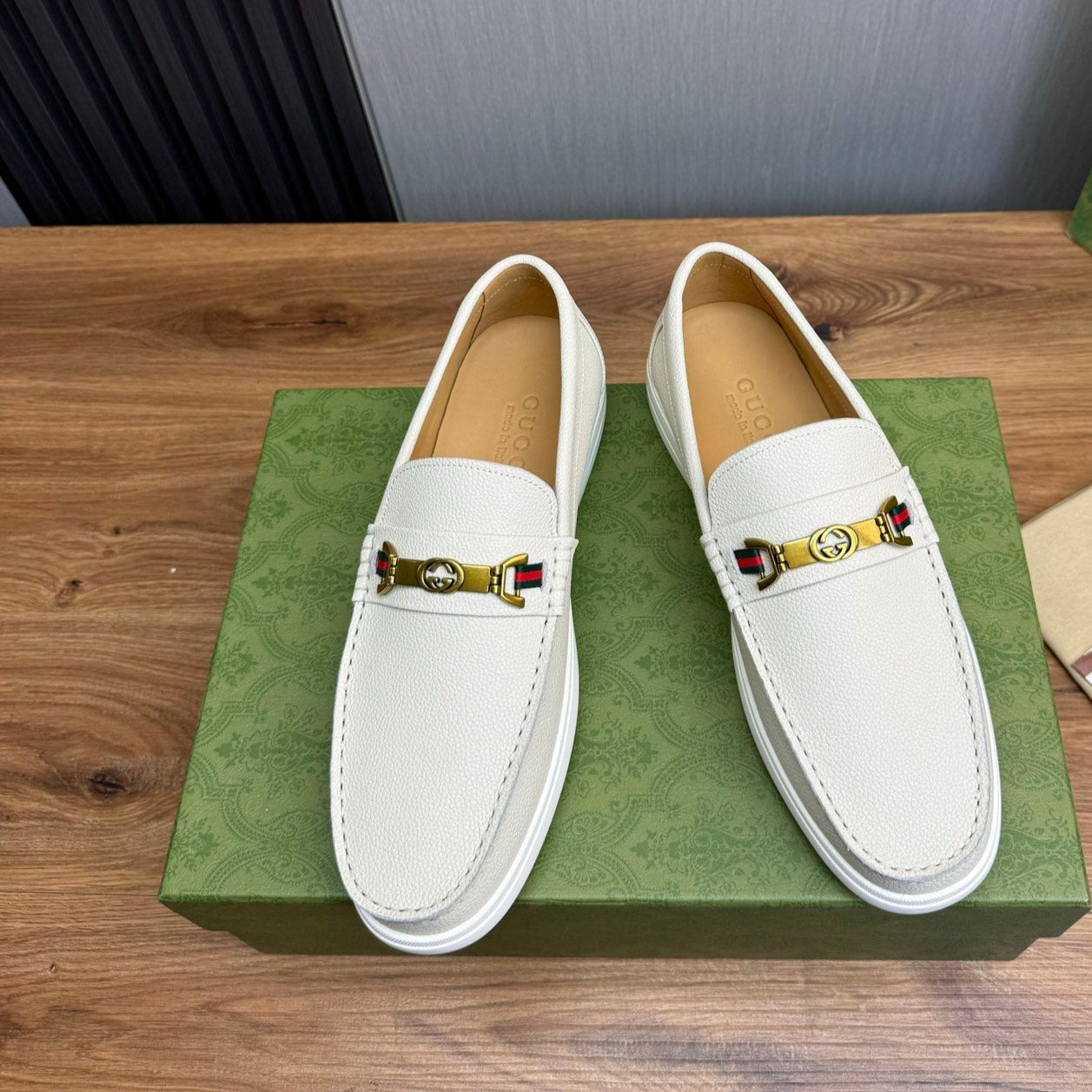 GG Men's Leather Loafers White Calfskin 587560