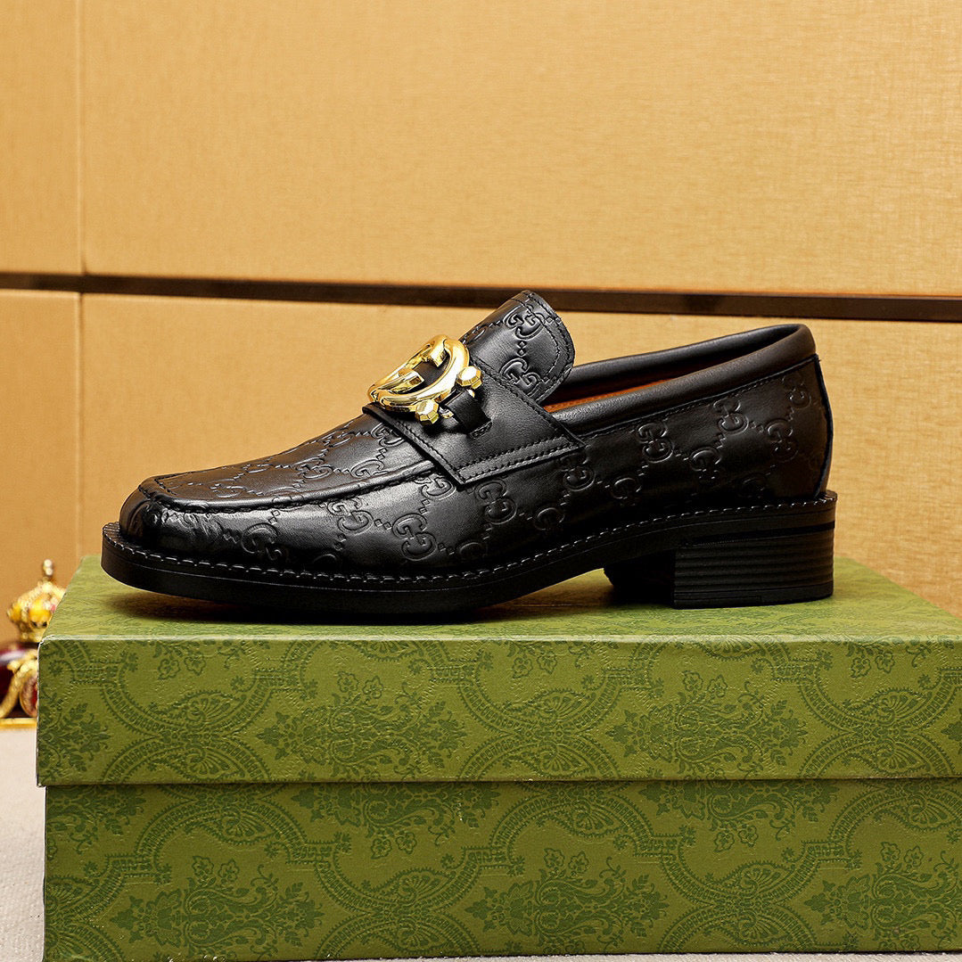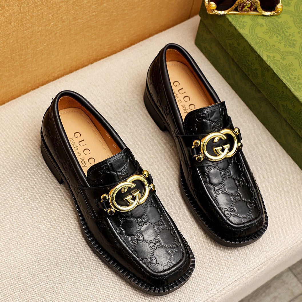 GG Men's Loafer Black GG Gold Embossed Cowhide 736976