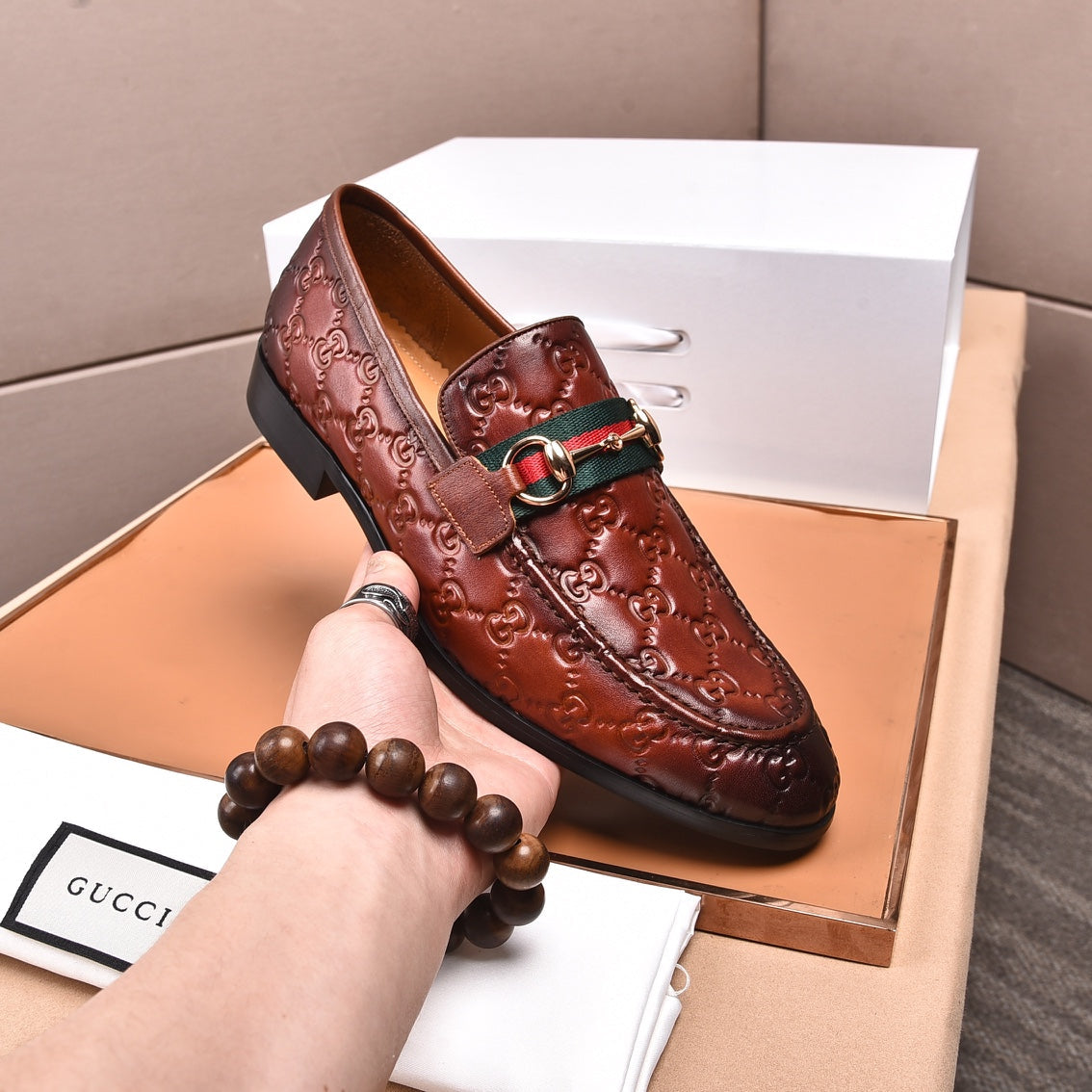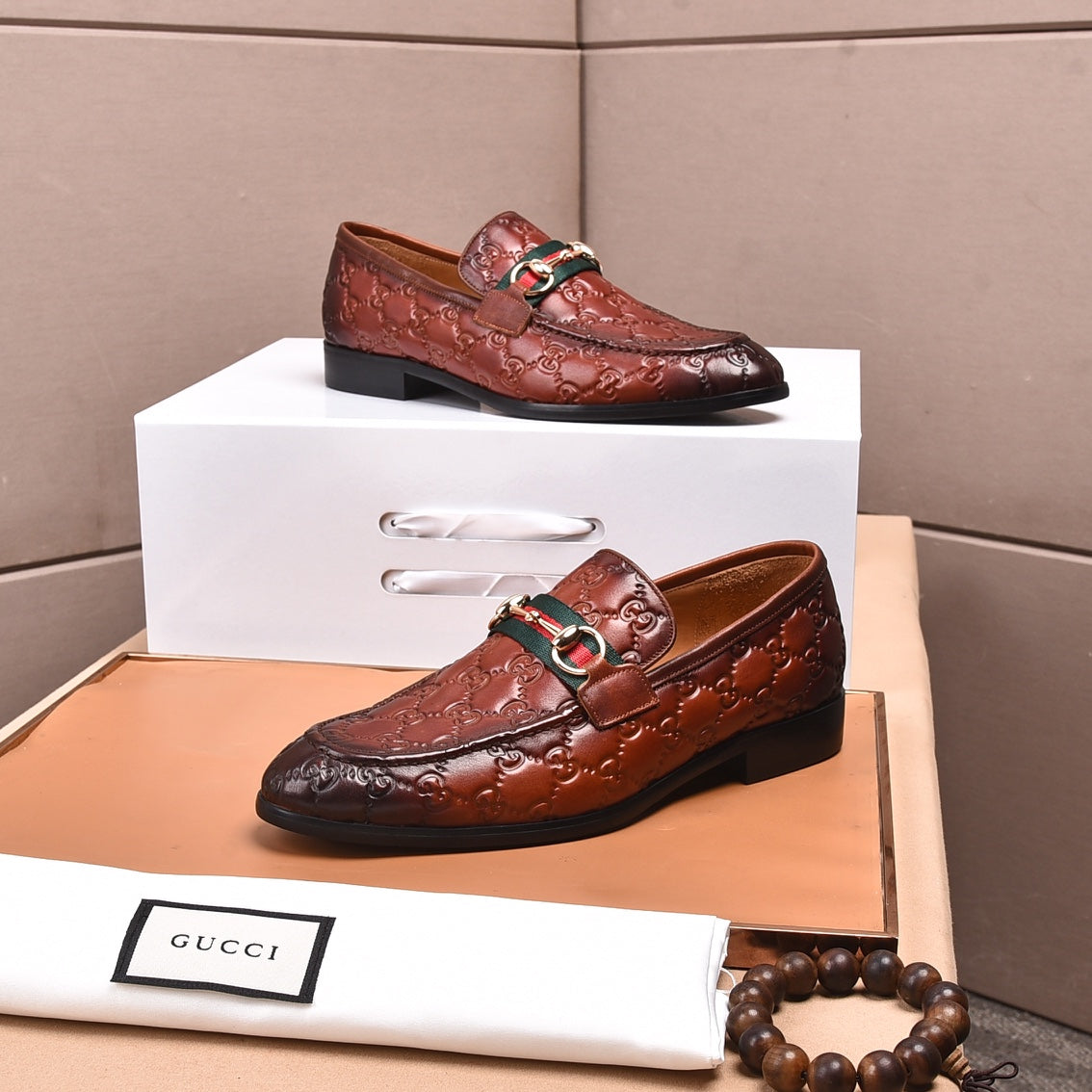 GG Men's Loafer Brown Embossed Cowhide 538714