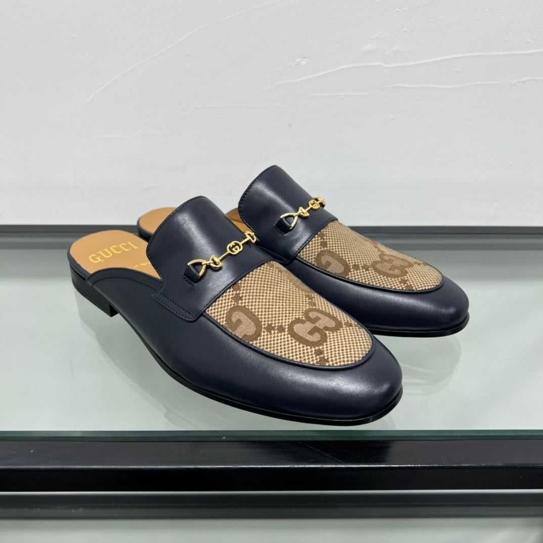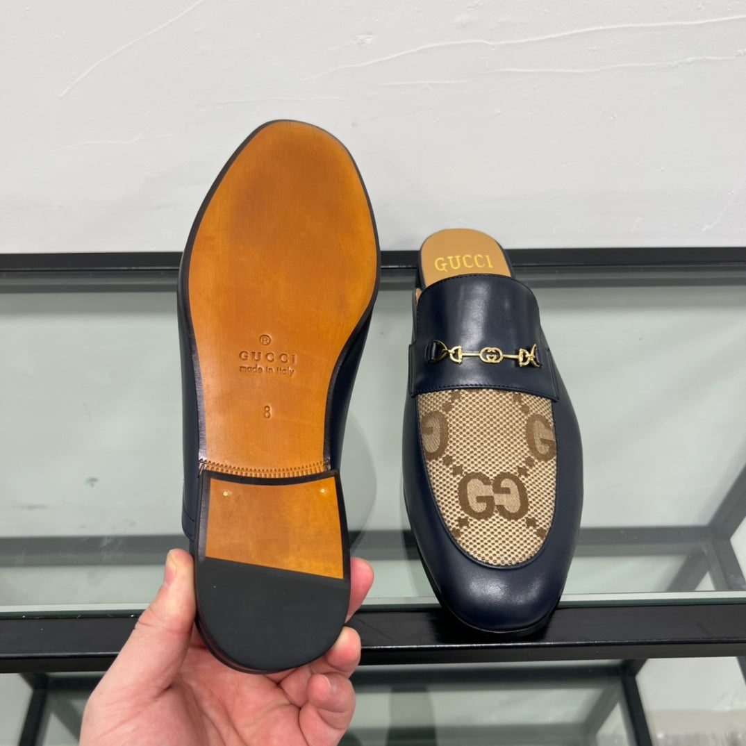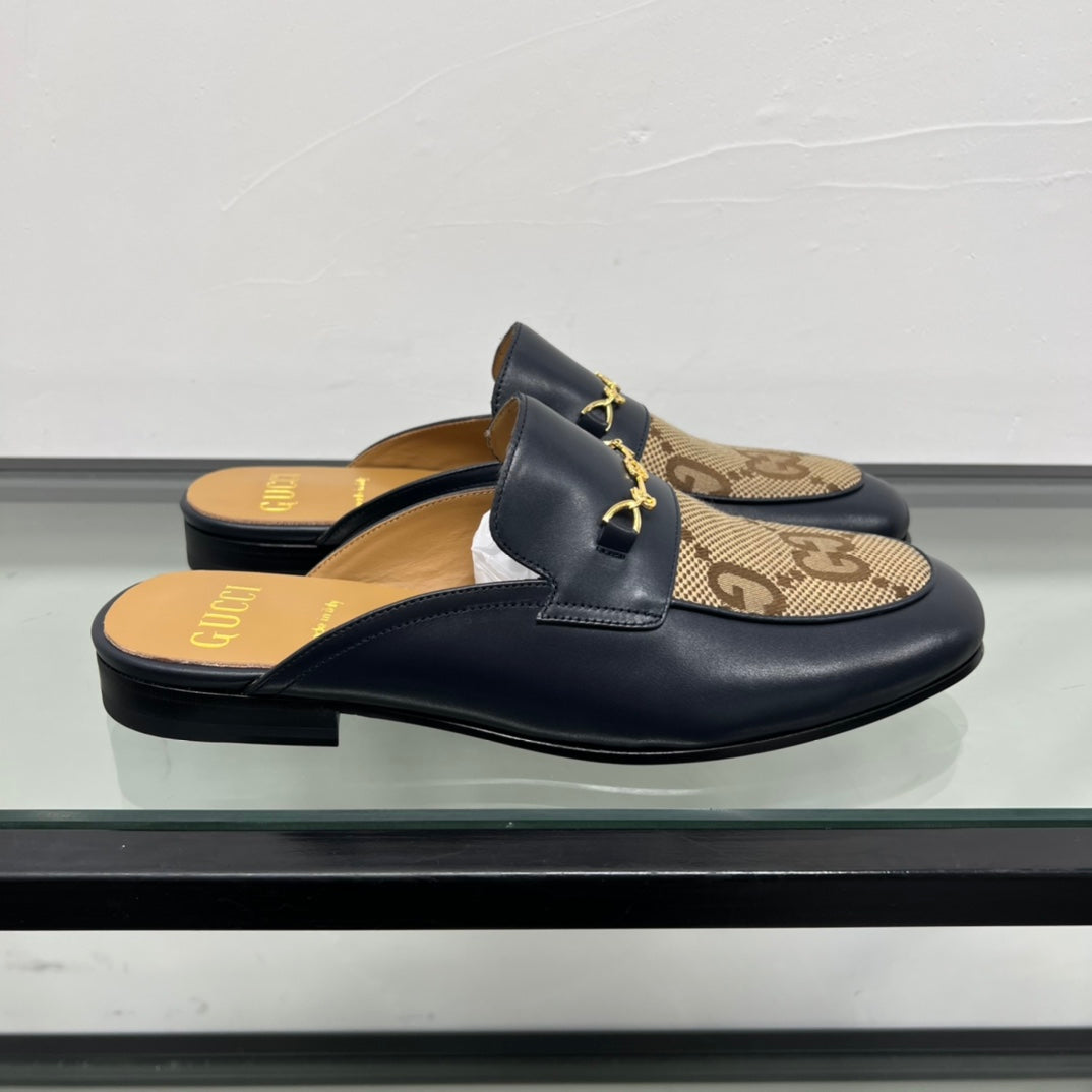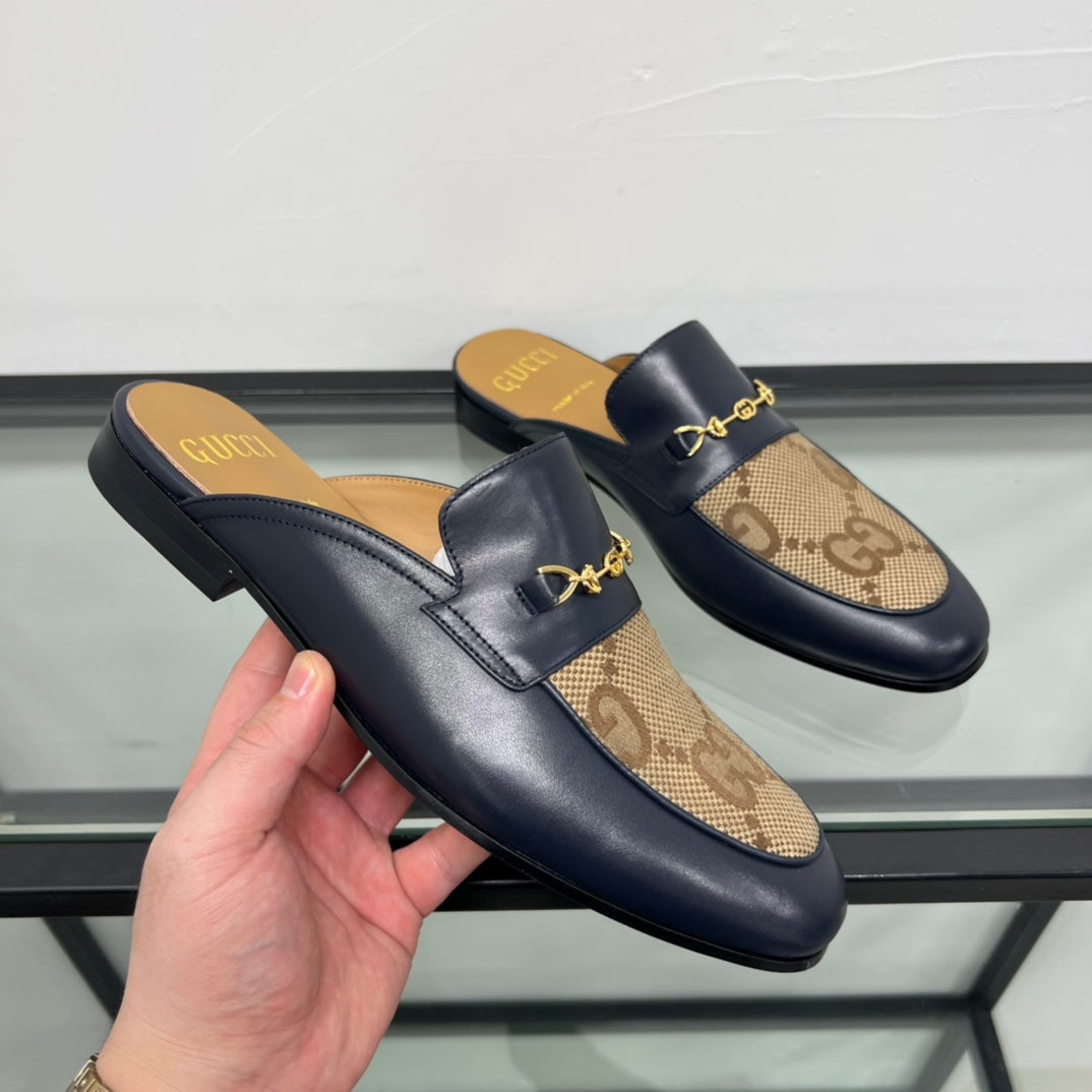 GG Men's Mule Brown Black Canvas Calfskin 559041
