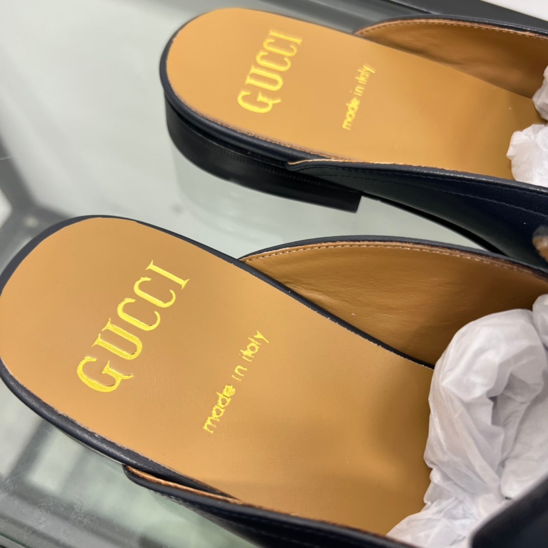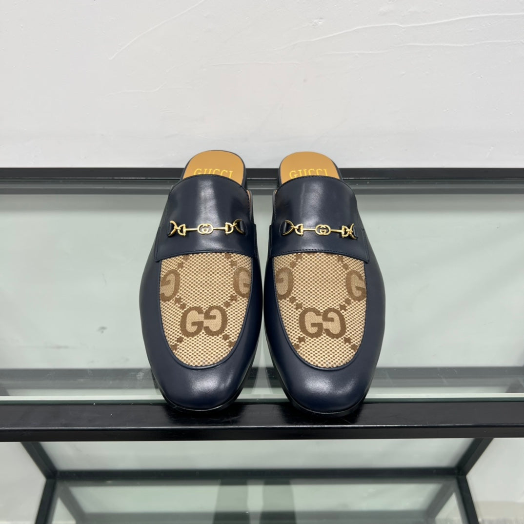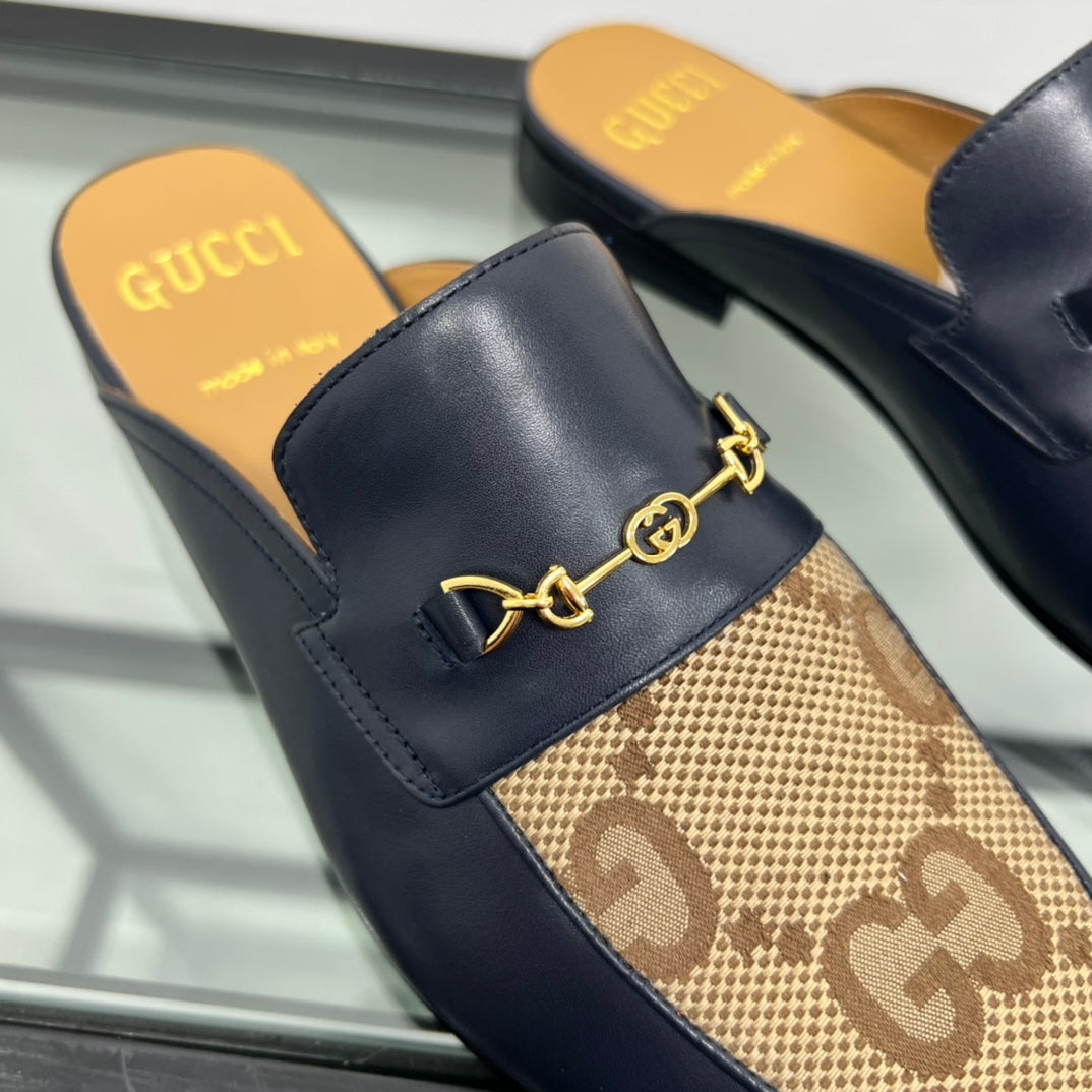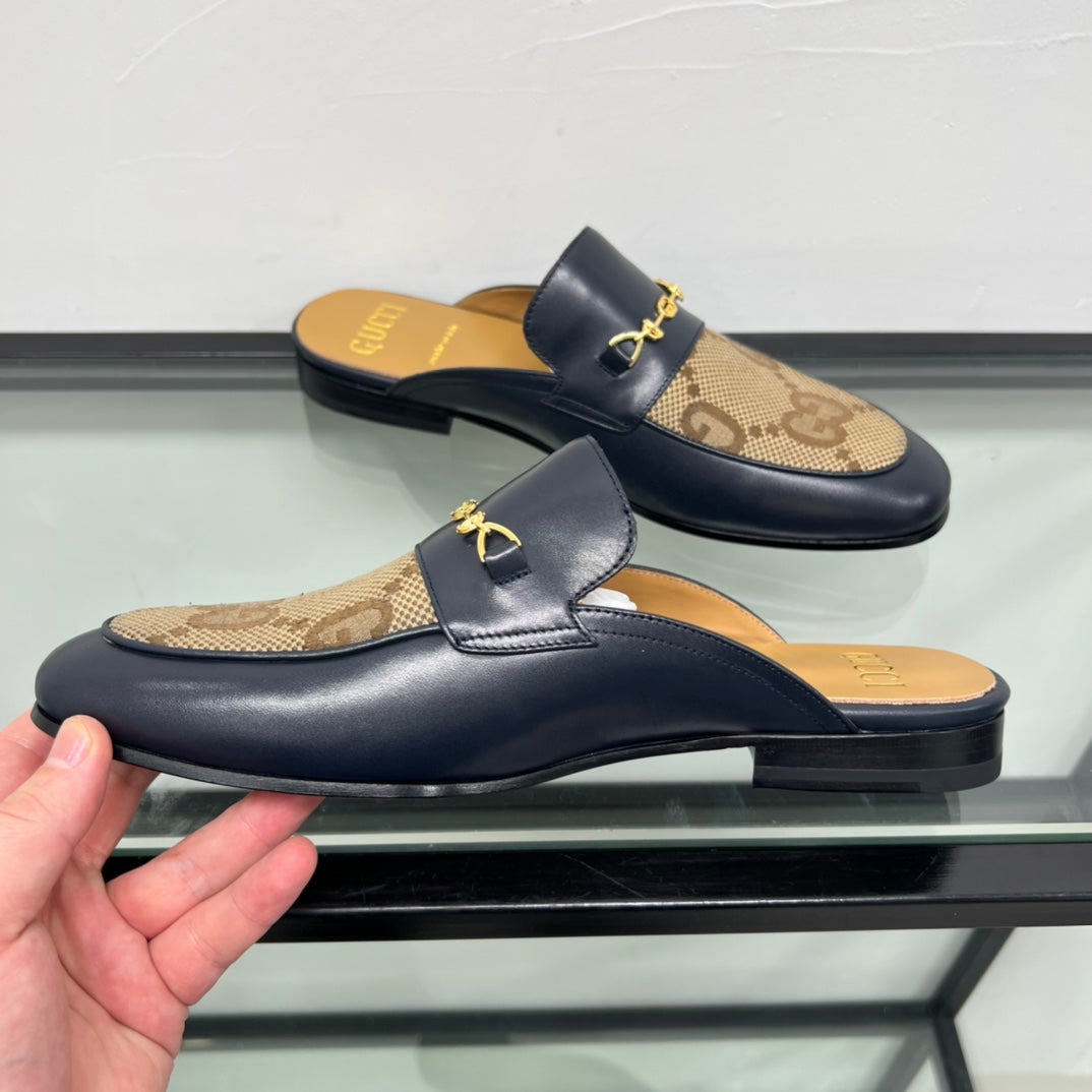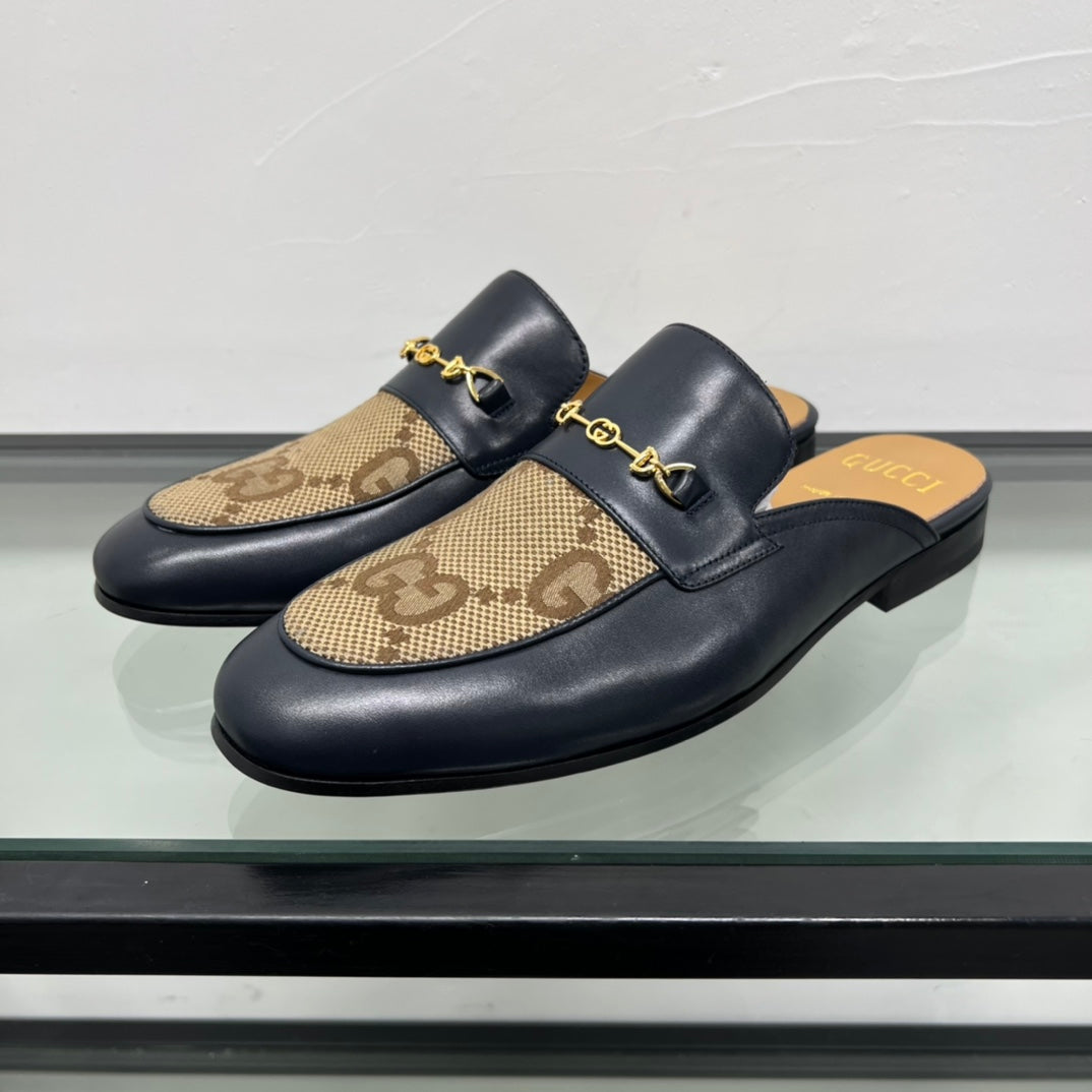 GG Men's Mule Brown Black Canvas Calfskin 559041