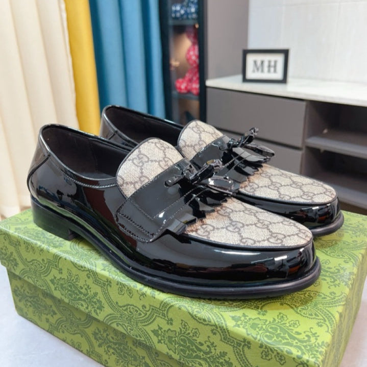 GG Men's Tassel Loafer Black Canvas Cowhide 330398