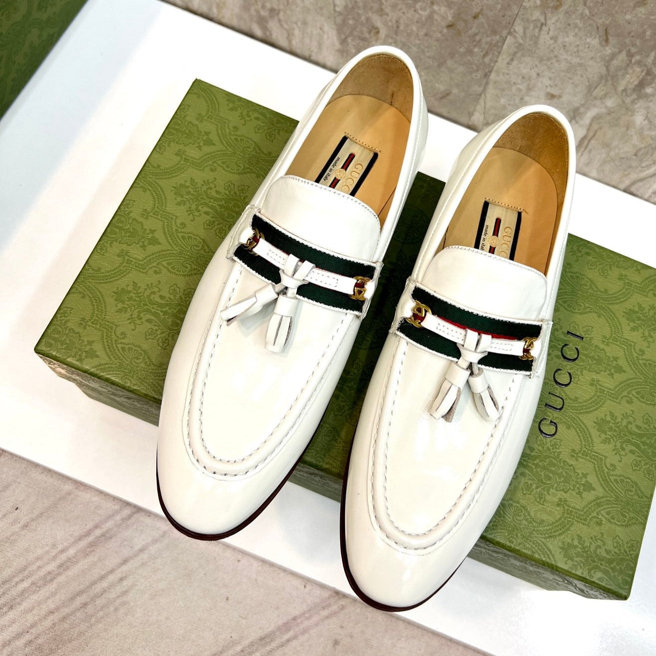 GG Men's Tassel Loafer White Cowhide 548746