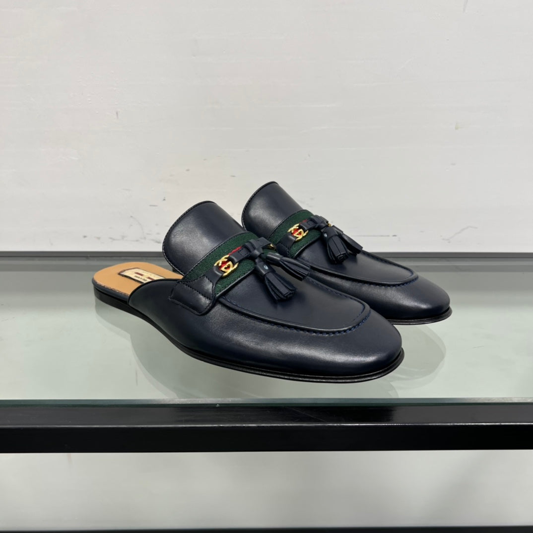 GG Men's Tassel Mule Navy Blue Calfskin 559046