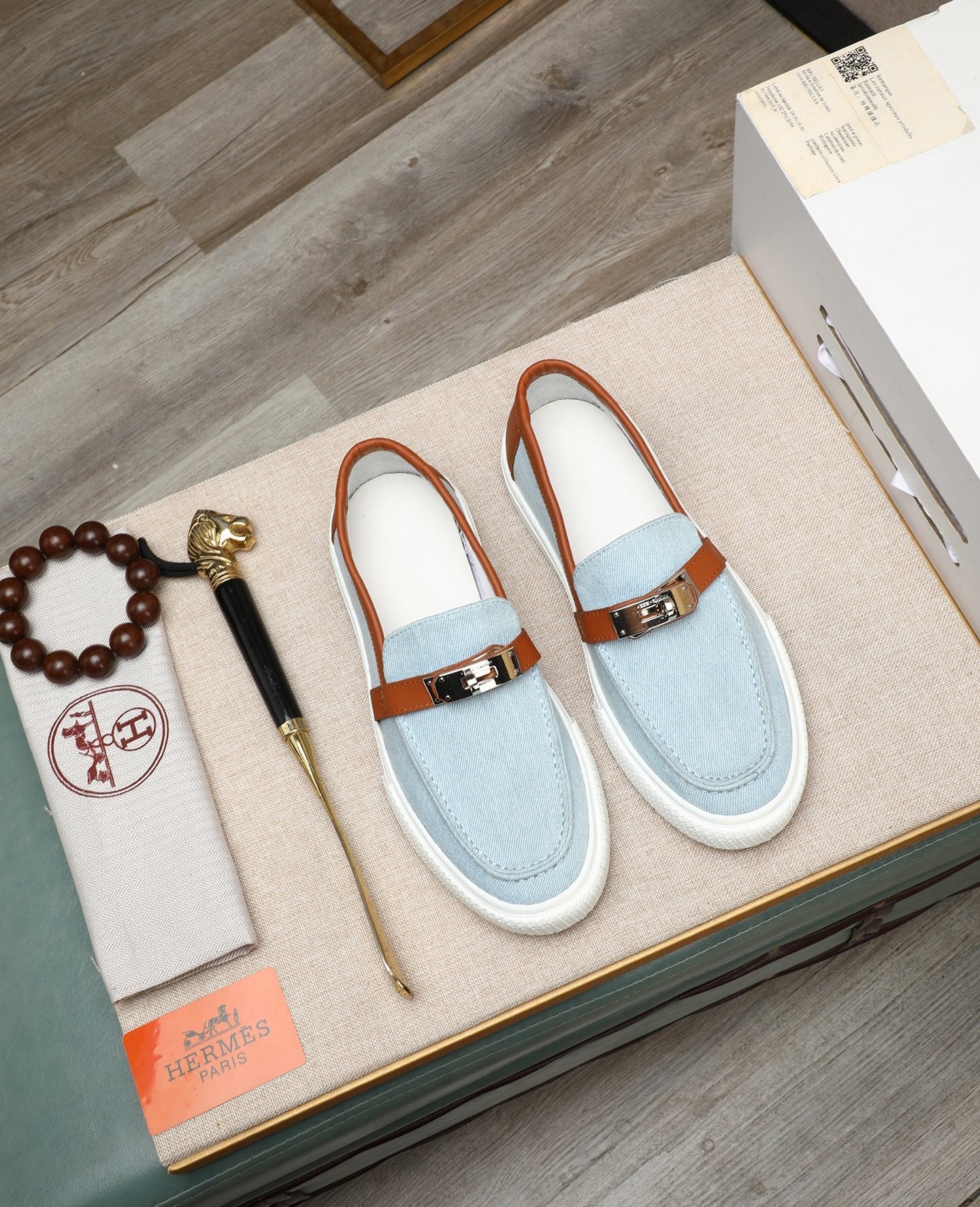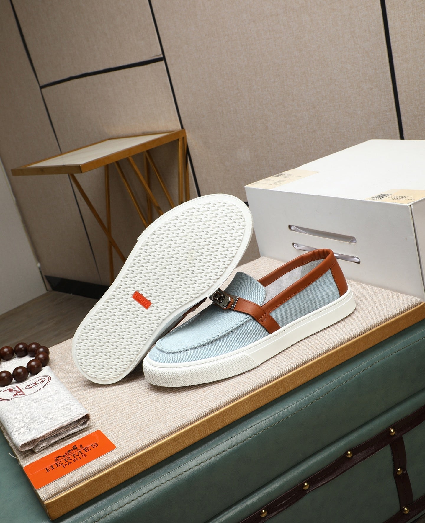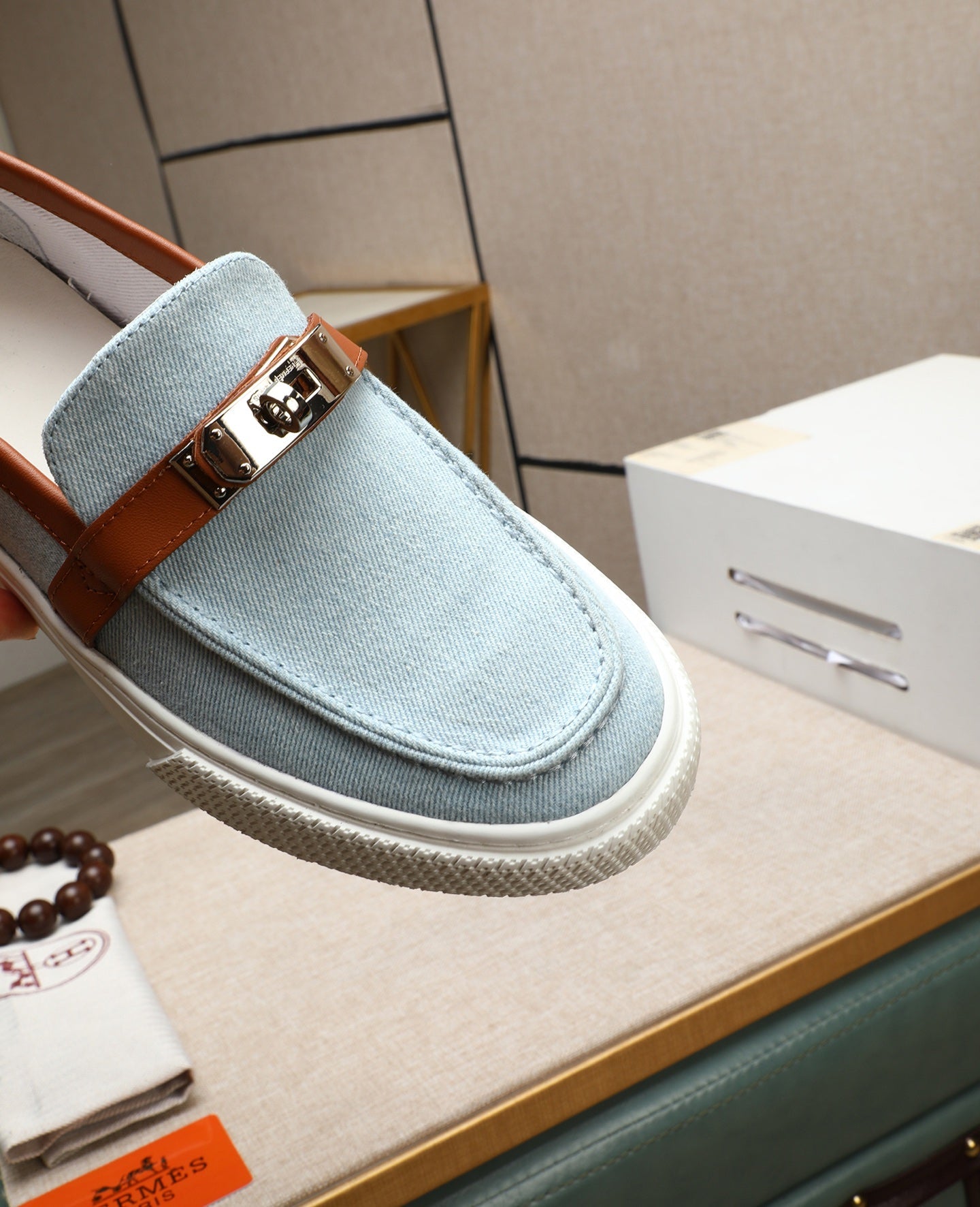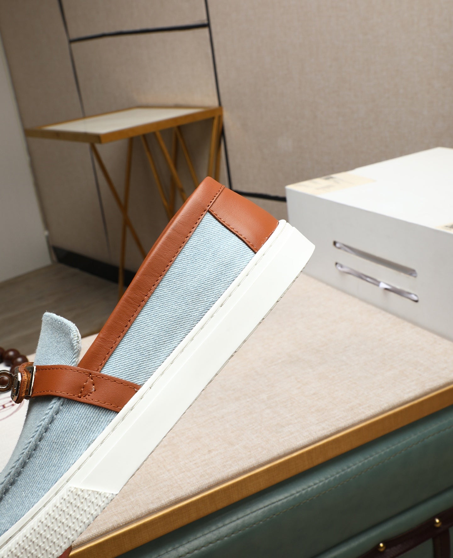 HM Men's Game Slip-on Blue Brown Denim Cowhide 712266