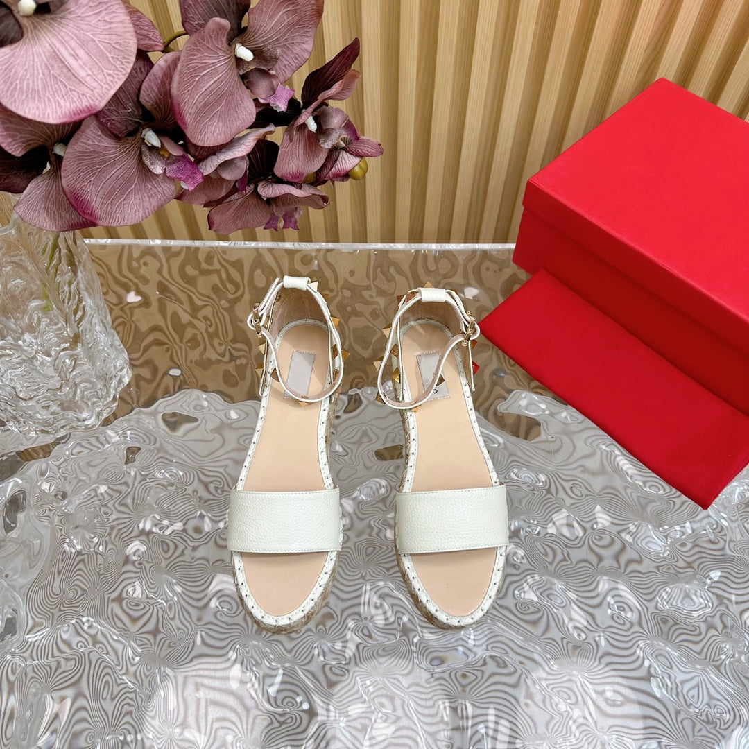 Rockstud Espadrille 45mm White leather sandals