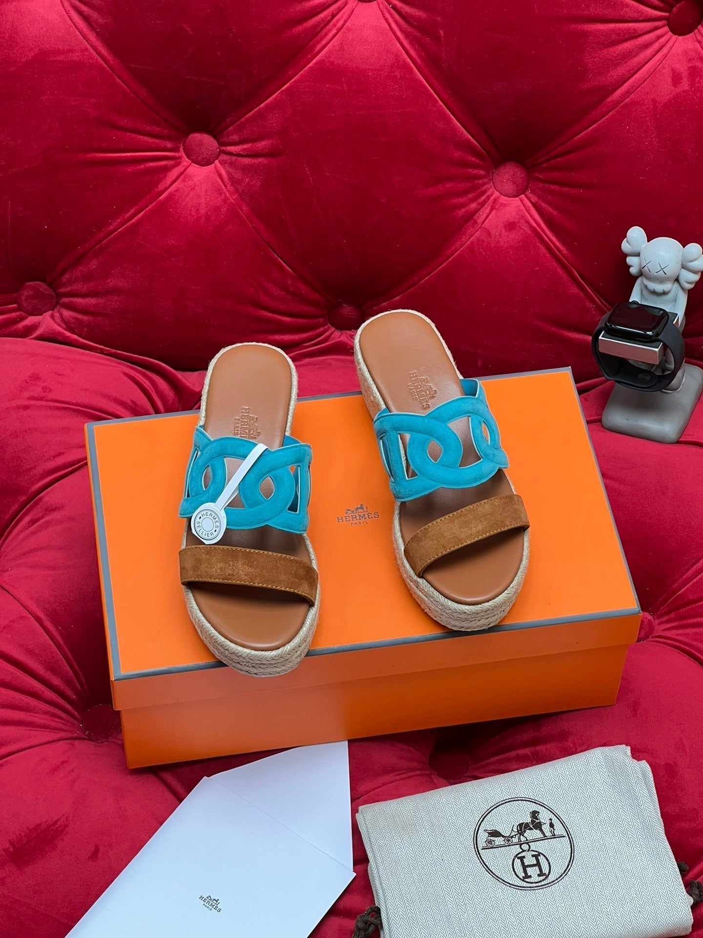 HM Lthea Espadrille Brown Mix Blue Suede And Jute Rope 969490