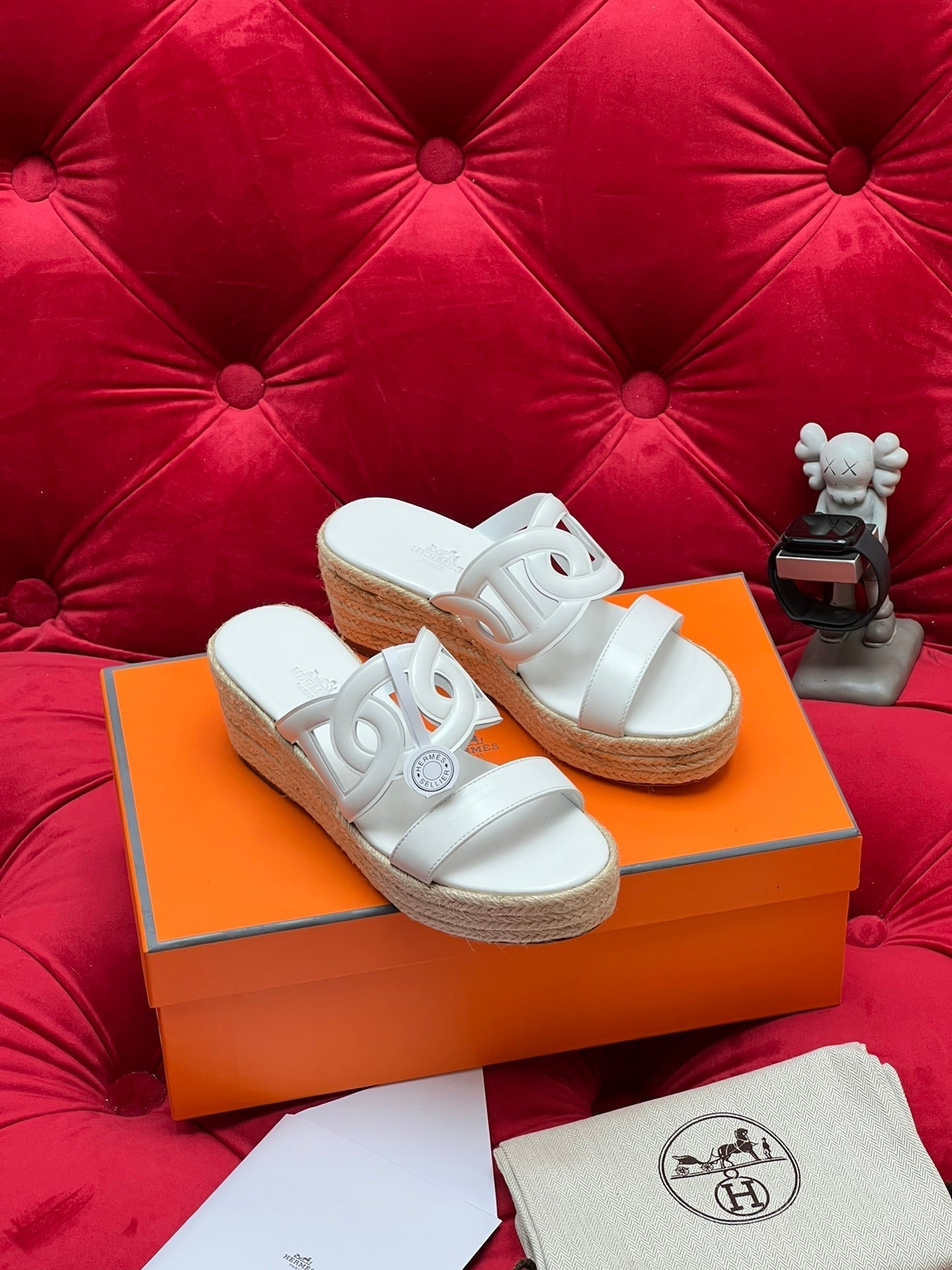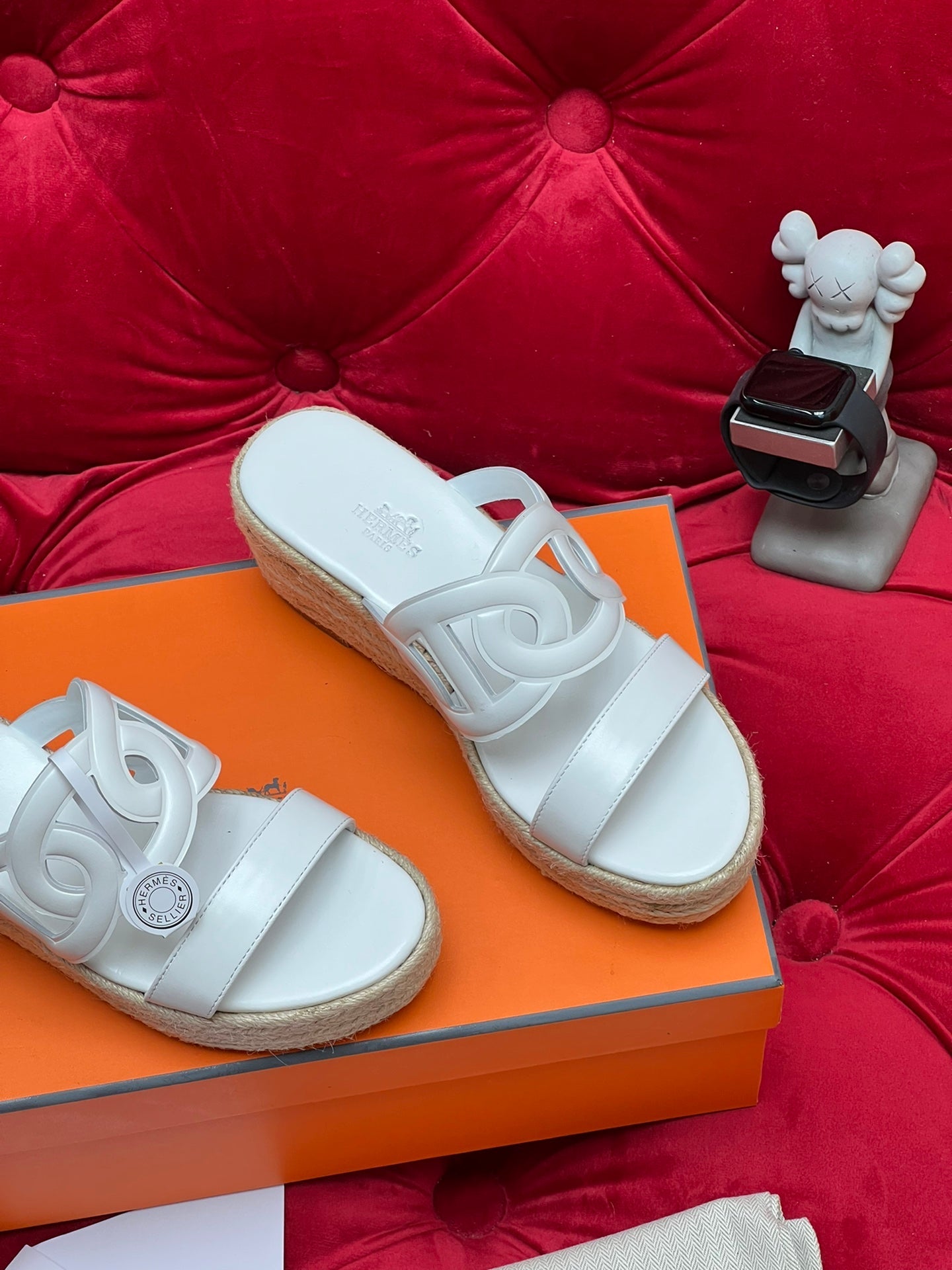 HM Feria Espadrille 20mm White Calfskin And Handwoven Hemp Rope 967989