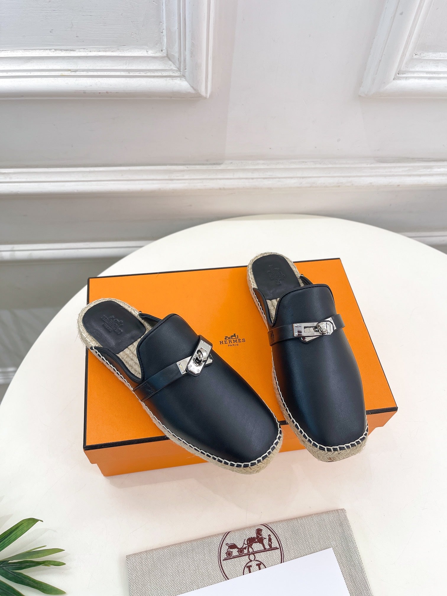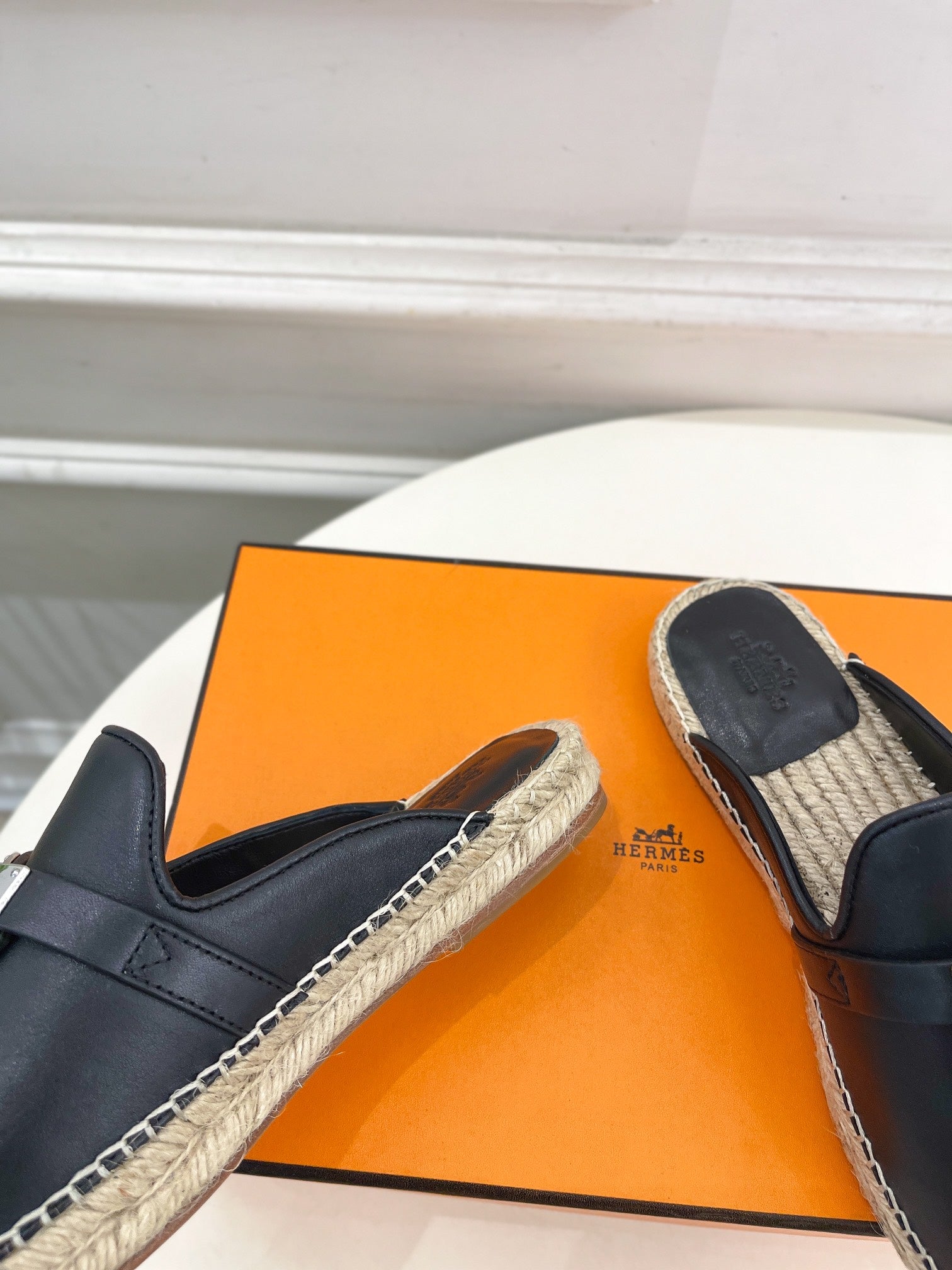 HM Feria Espadrille 20mm Black Calfskin And Handwoven Hemp Rope 967988
