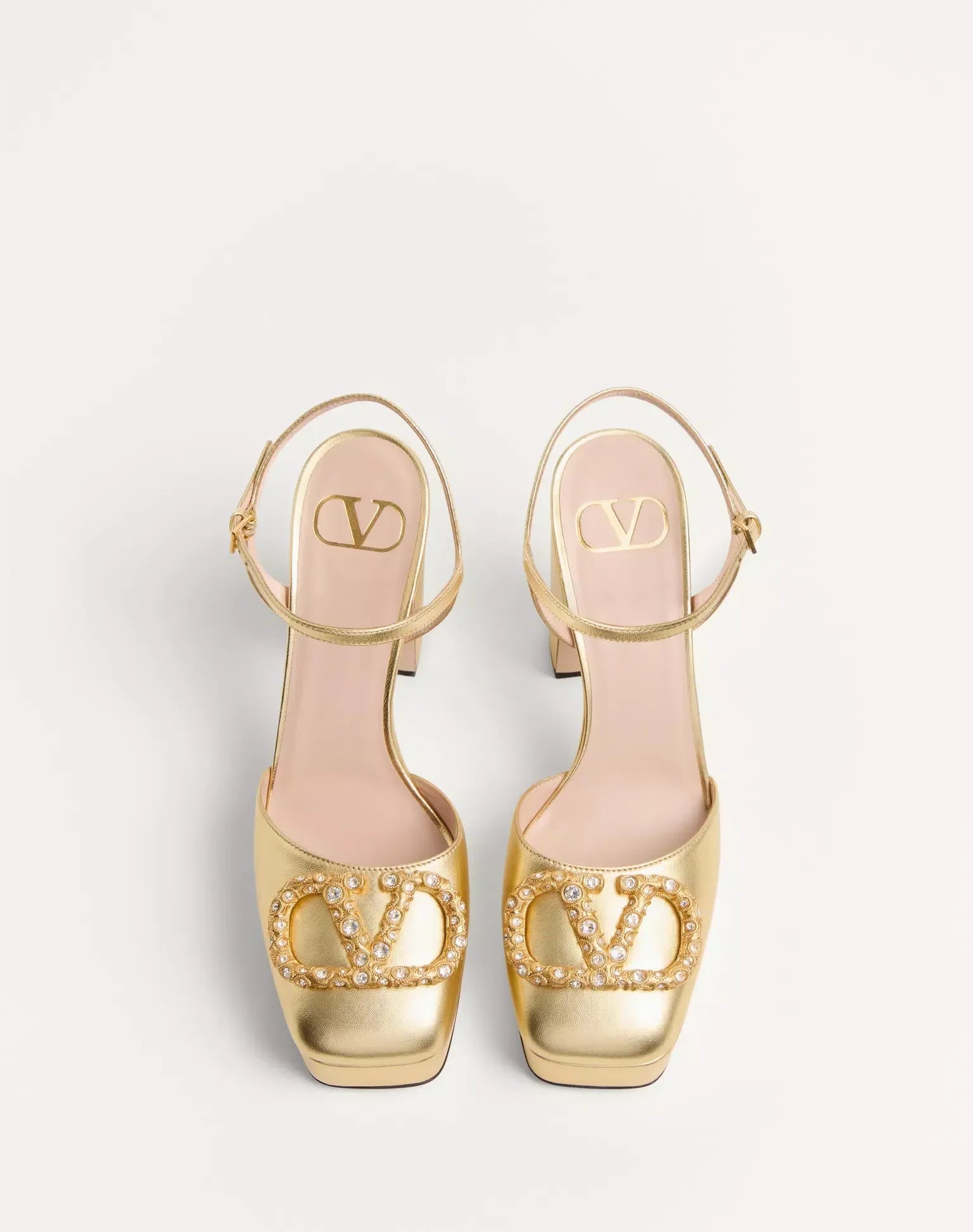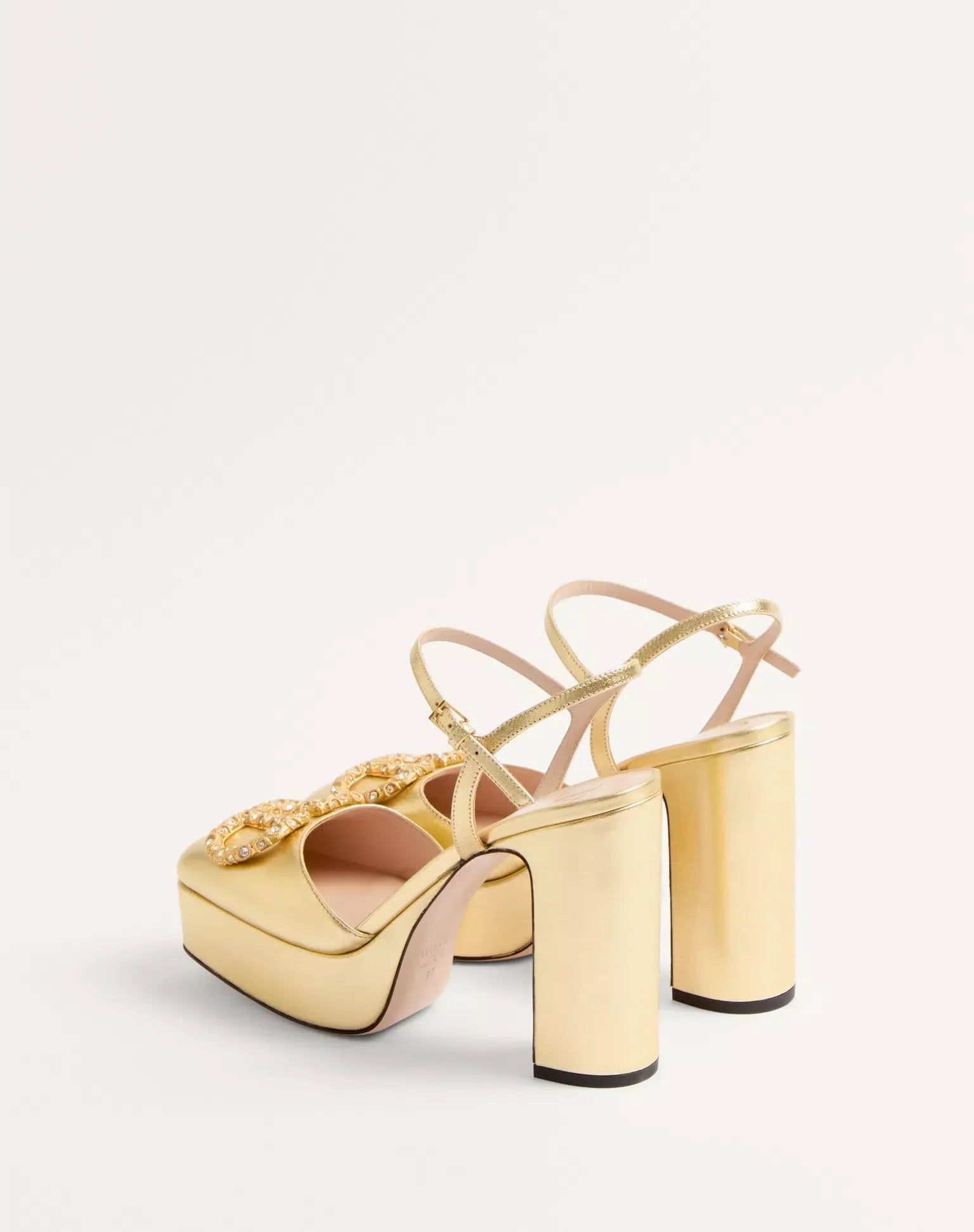 VLOGO SIGNATURE PLATFORM PUMP 115MM GOLD LAMINATED NAPPA