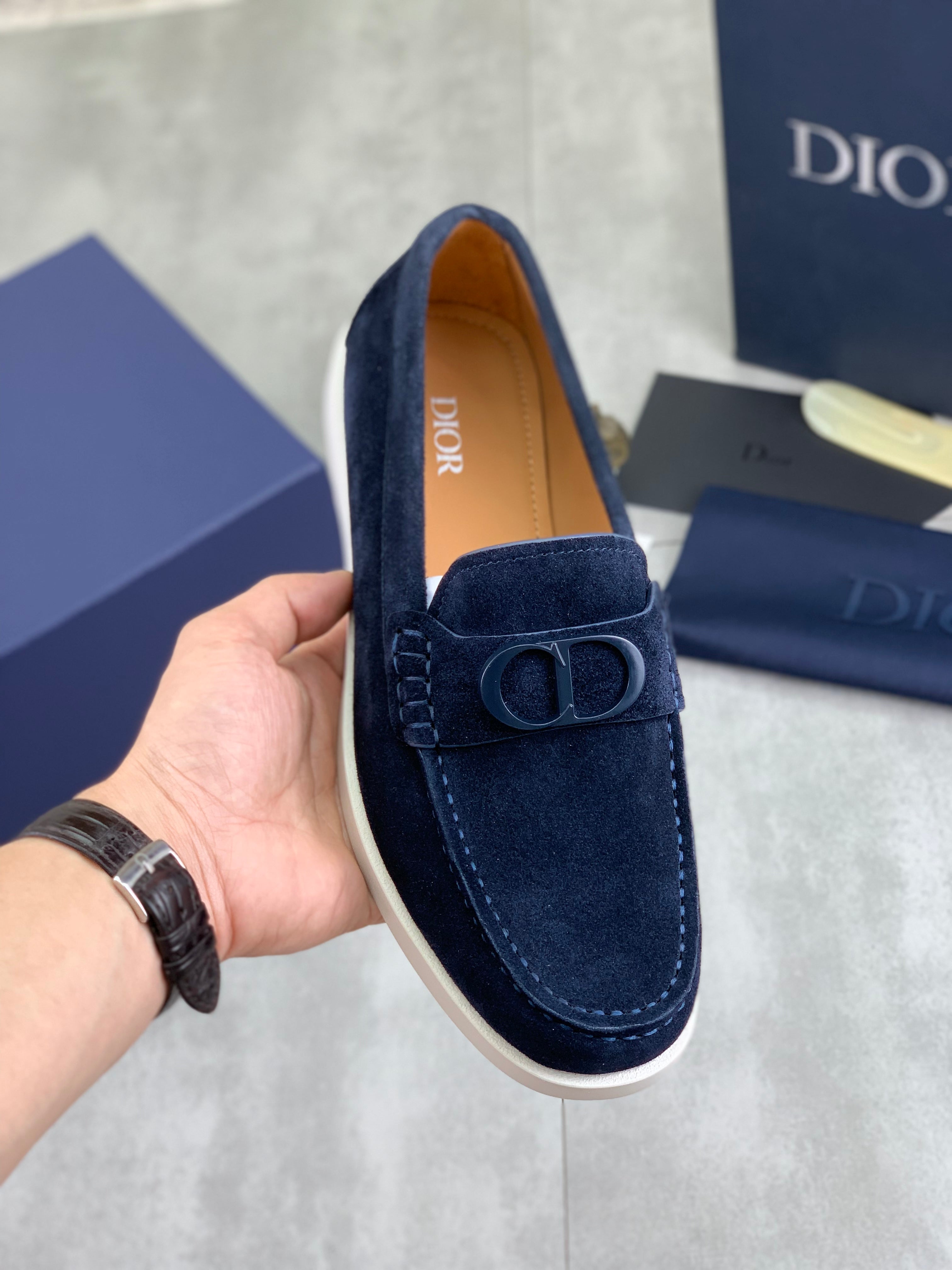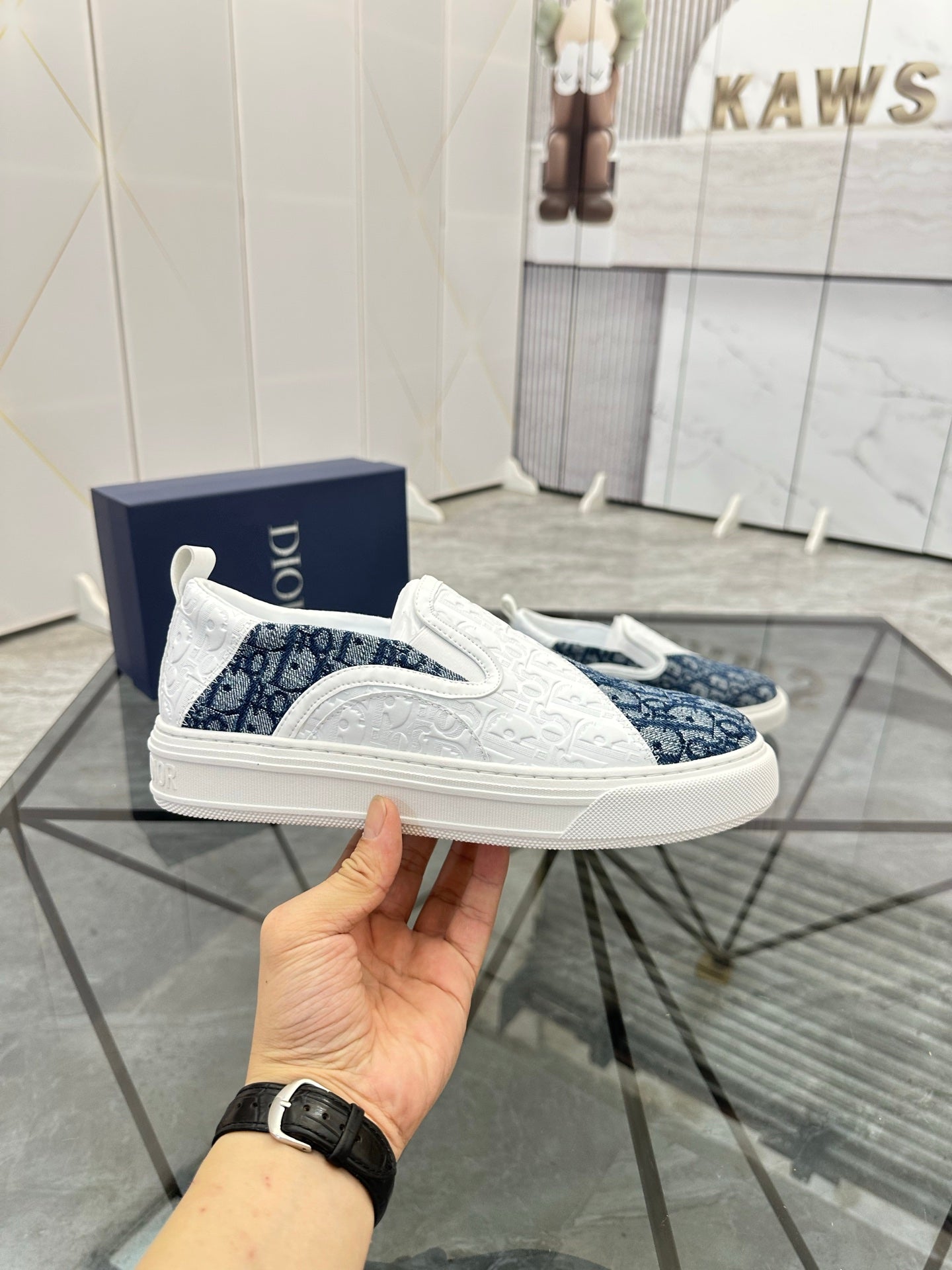 CD Slip on loafer White Blue Cowhide Fabric 647995