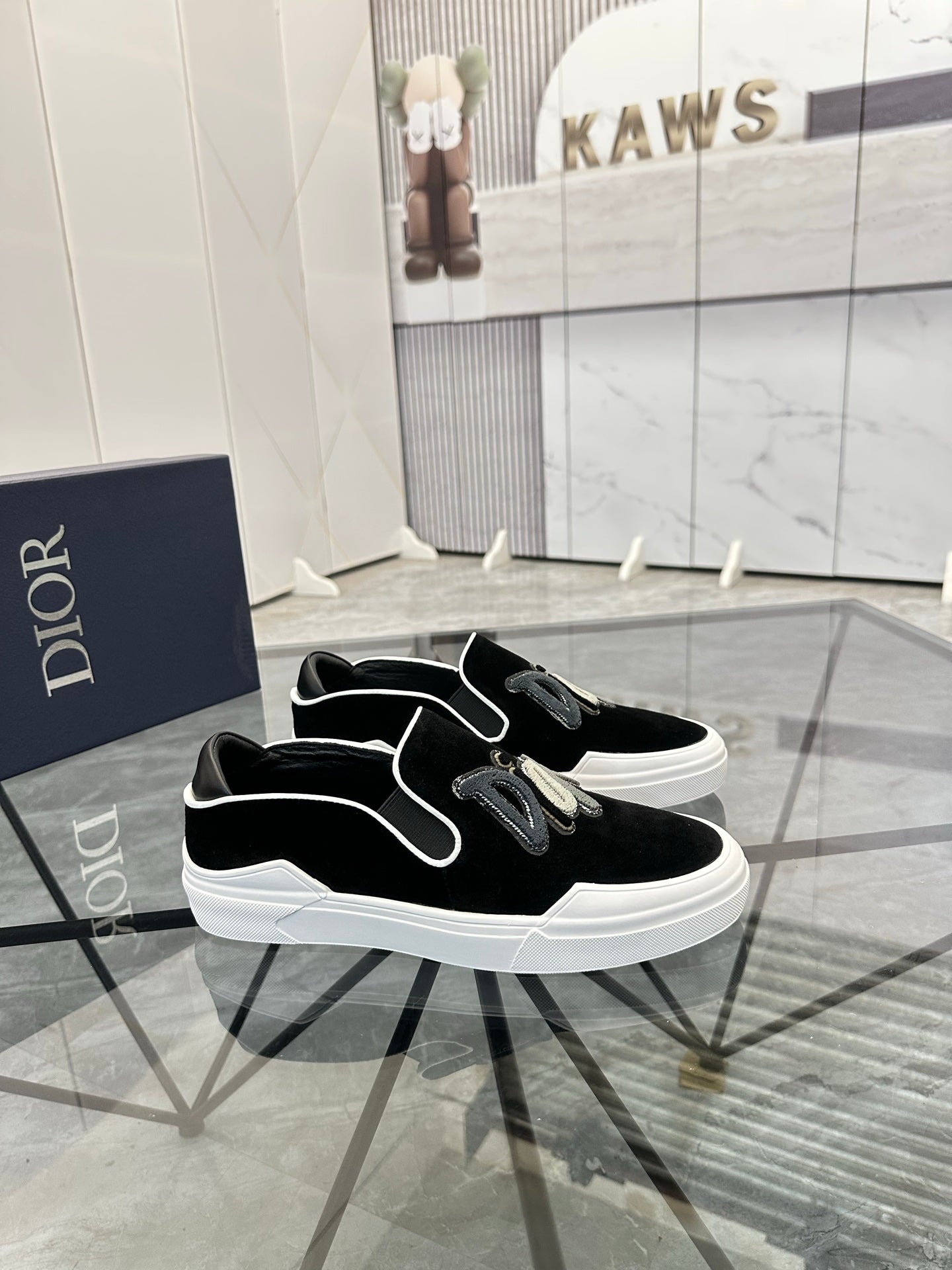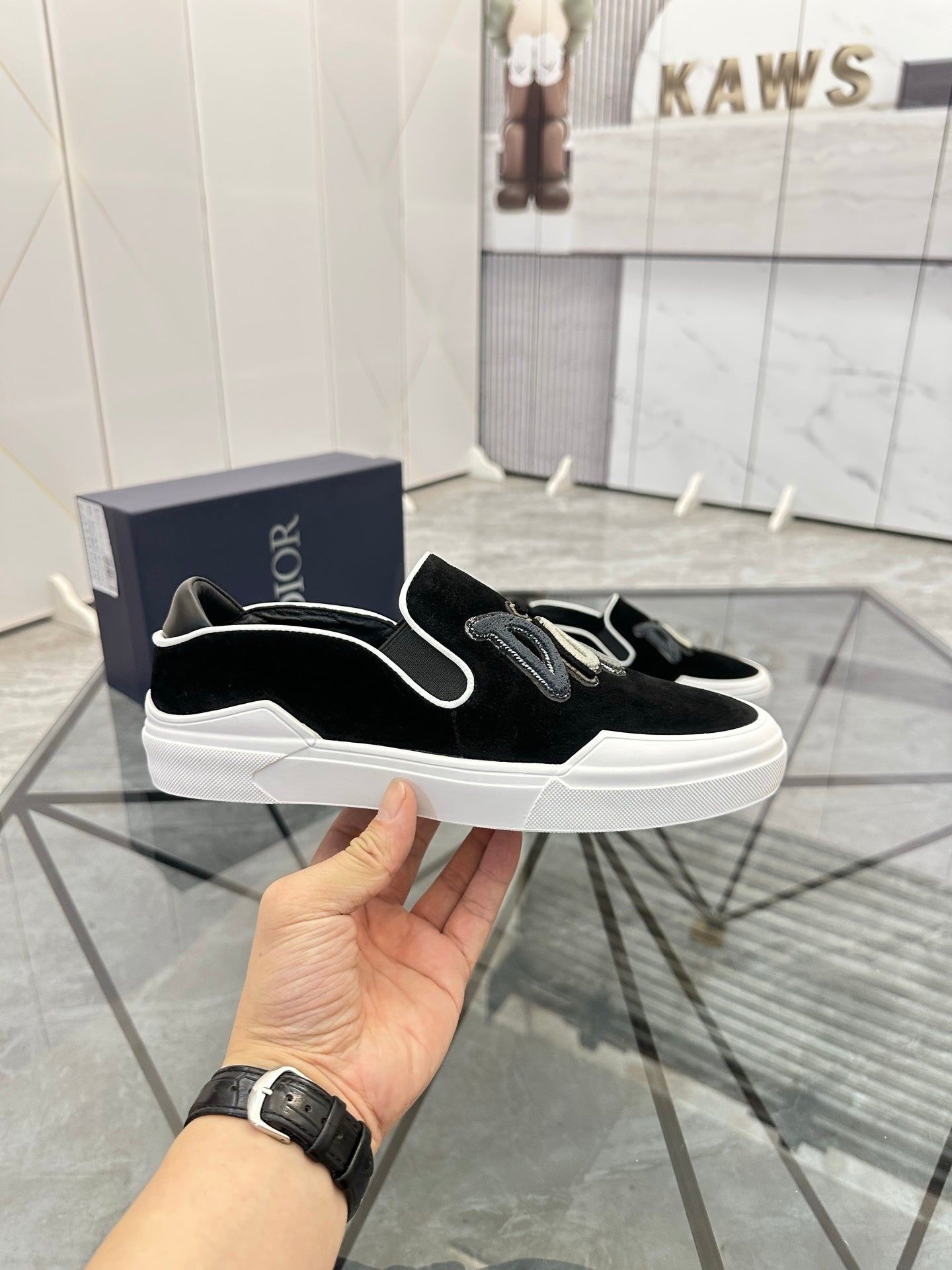 CD Slip on loafer Black Blue Cowhide Fabric 647996
