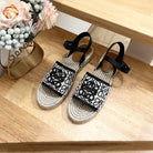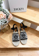Loew Anagram Black logo White Black Beige Leather And Canvas Espadrille Sandals