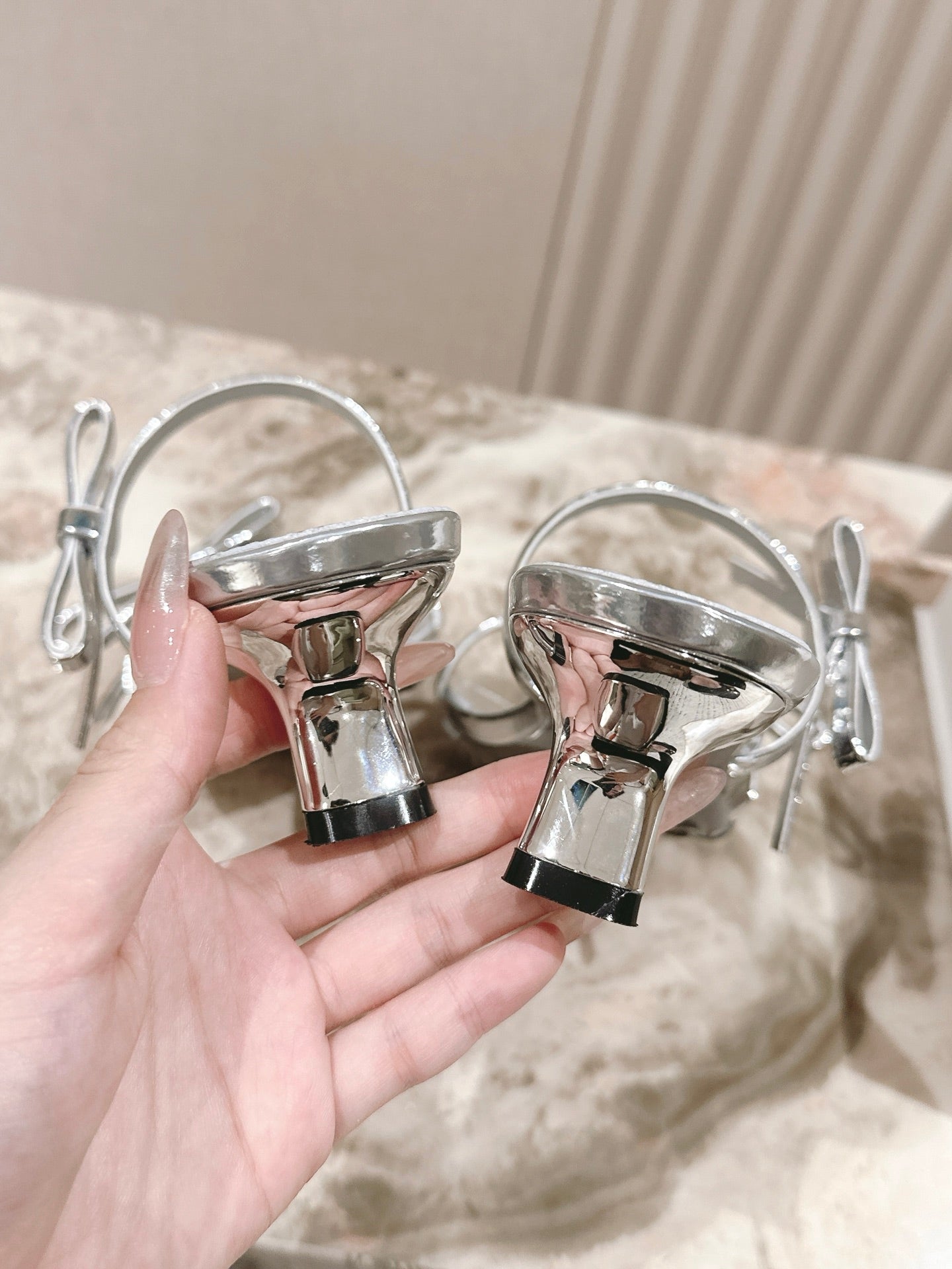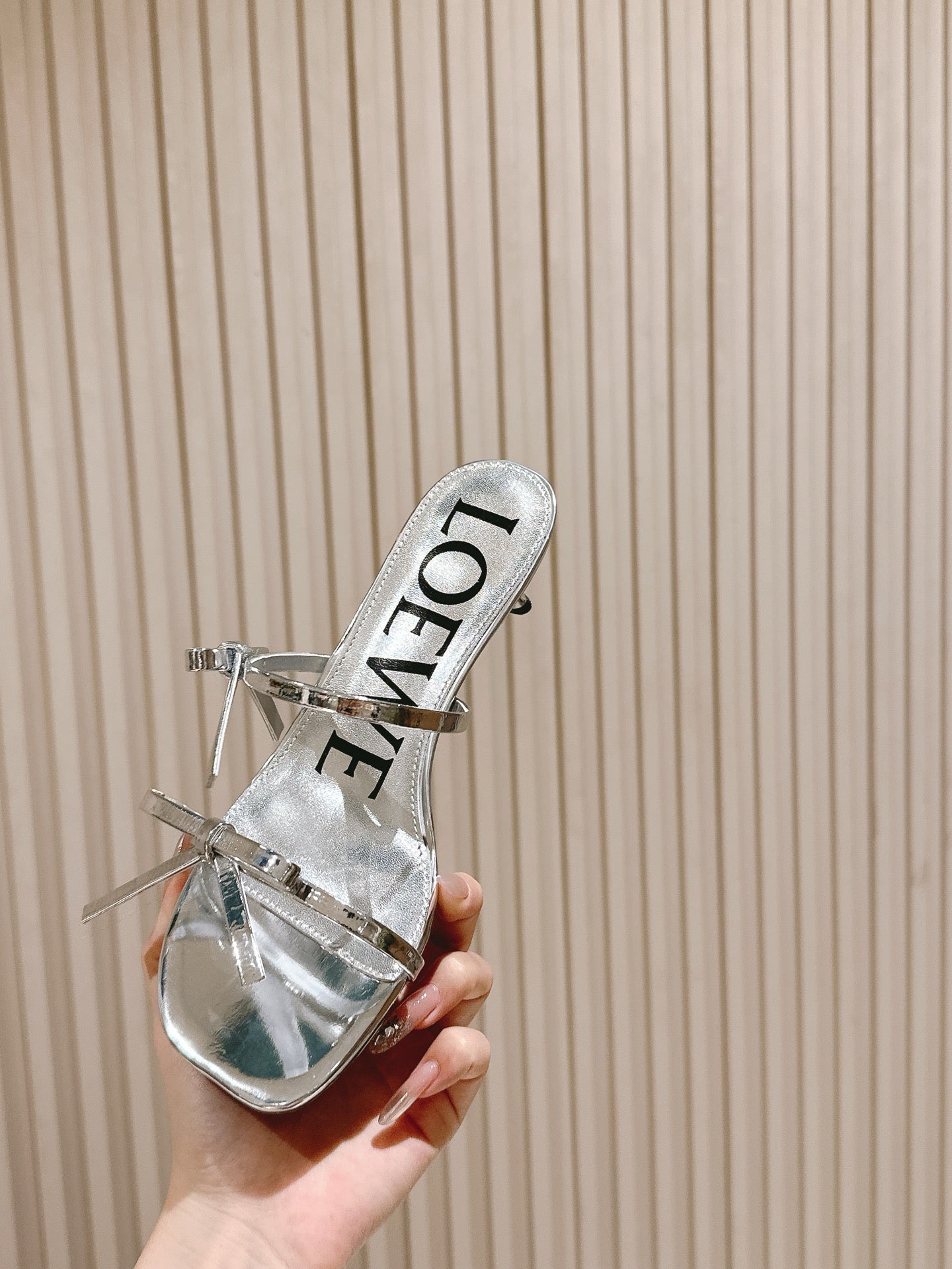 Loewe 25 Petal Bow Sandals Silver Cowhide PVC