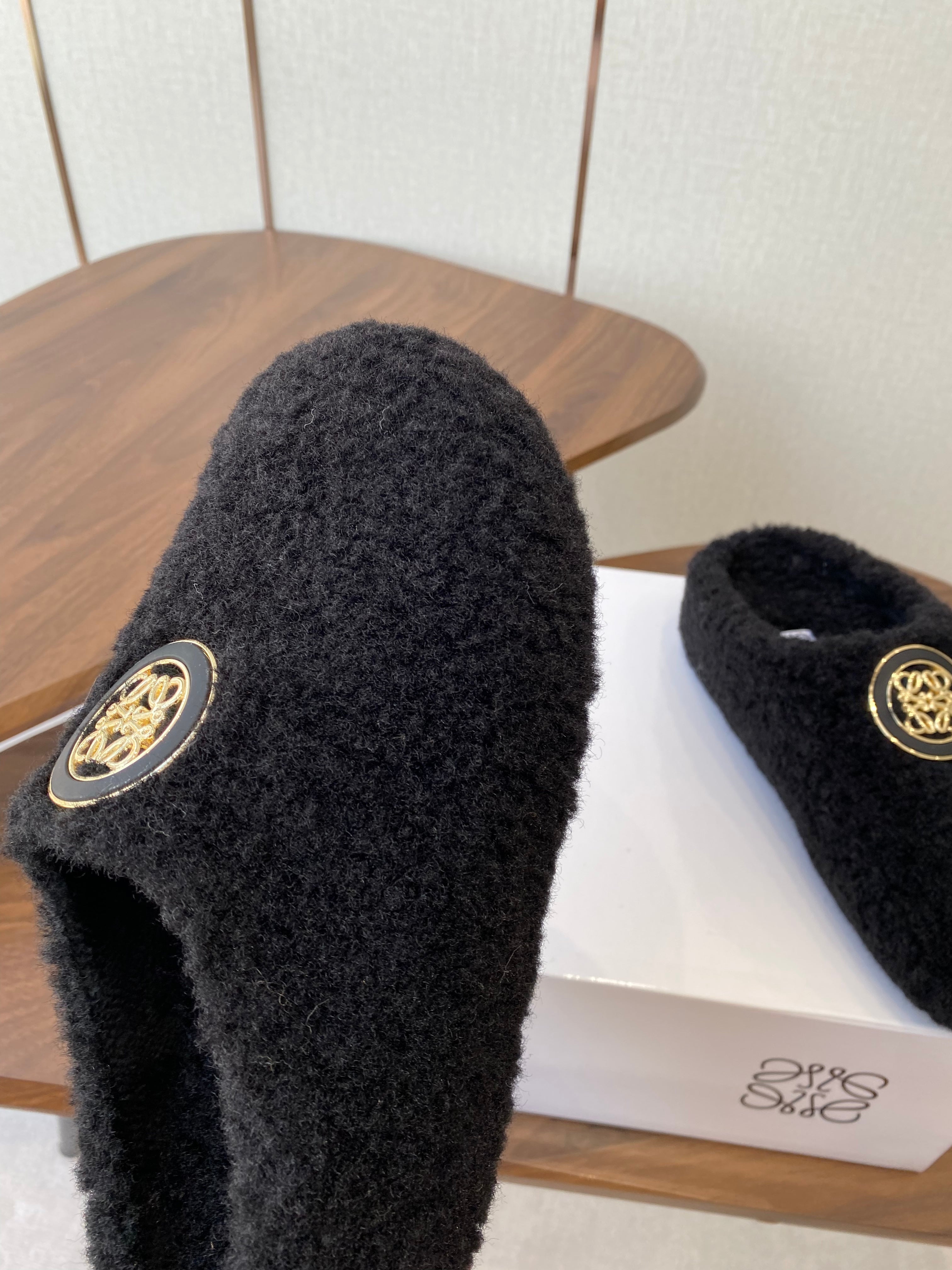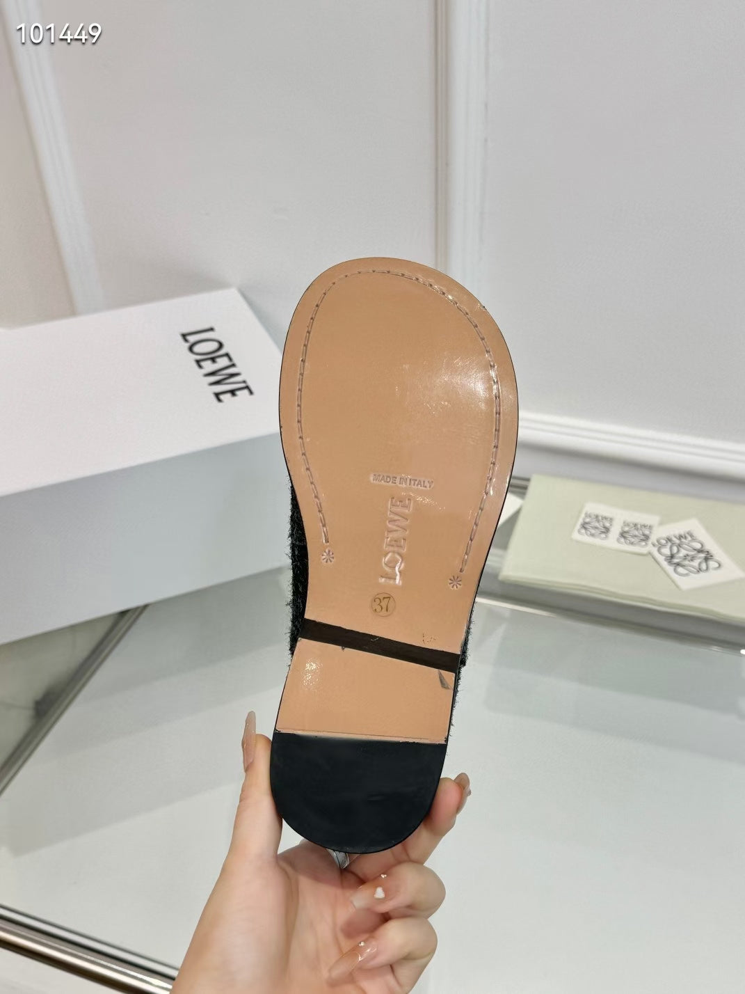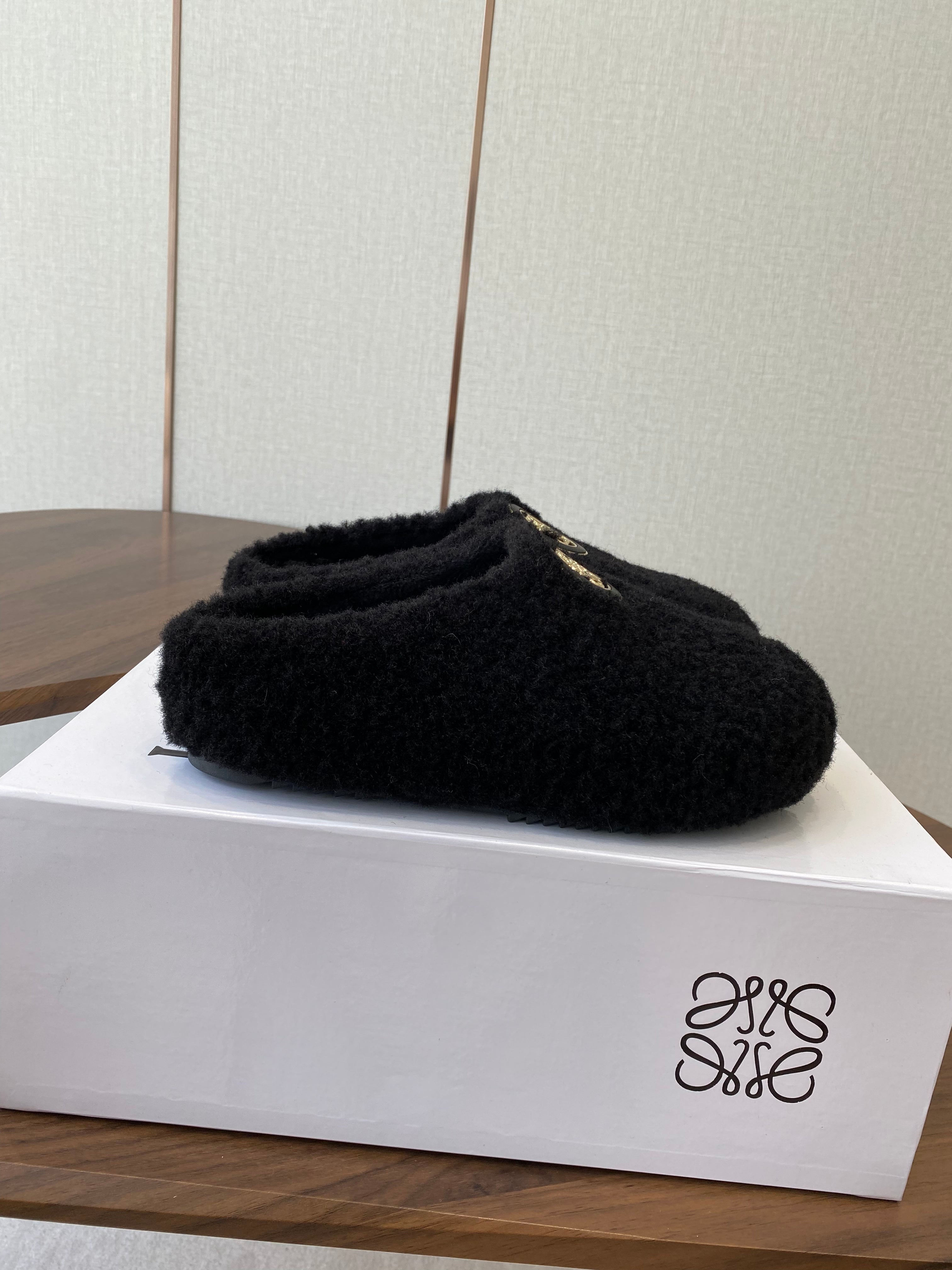 Loewe 2025 Fur Slipper Black White Wool 556016