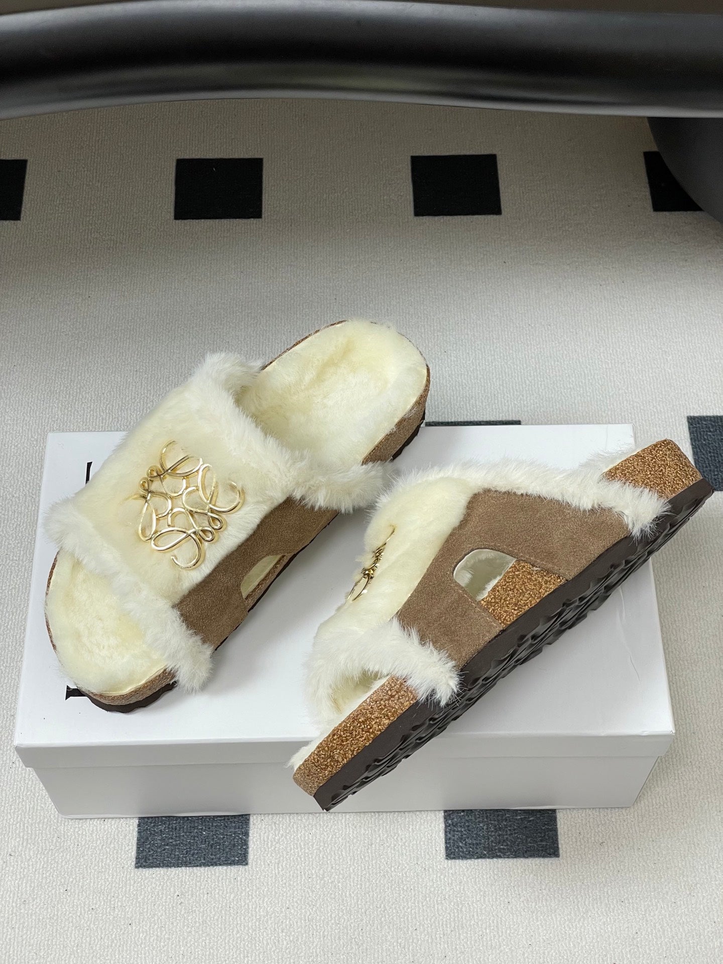 Loewe 2025 Fur Slipper Brown Beige Wool 556013